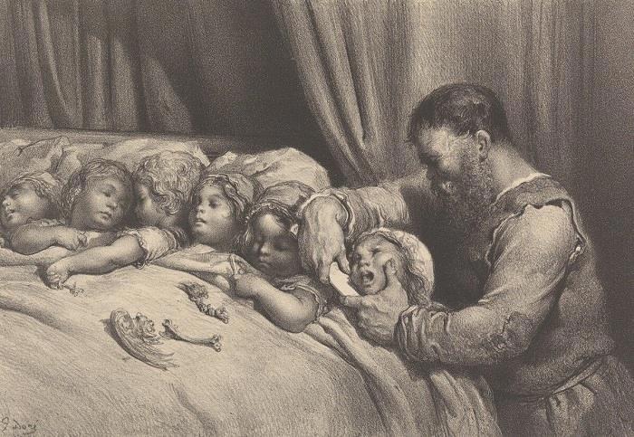 Странным покажется, что дровосек нажил столько детей в такой короткий промежуток времени, но у жены его работа кипела, и она иначе и не рожала, как двойни.
