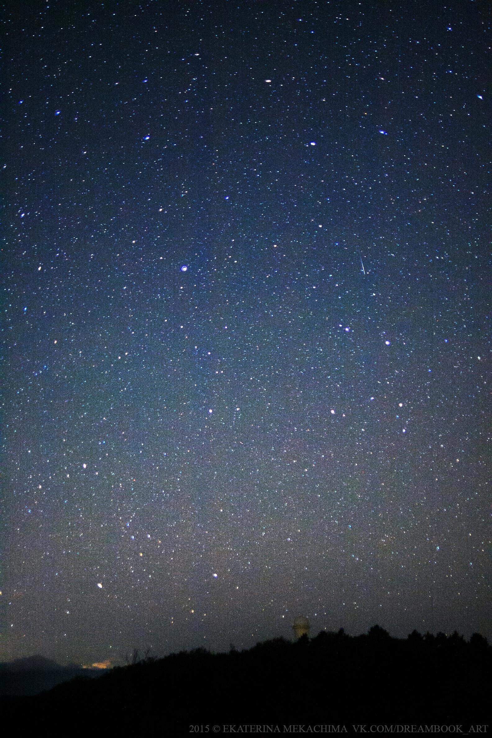Небо над солнечным телескопом (КРАО, Крым). А еще можно найти метеор :)