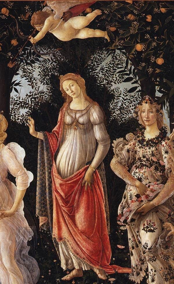 В 1482 году Боттичелли написал картину "Весна", которая посвящена Весне, Любви и таинствам чувств, связанных с циклом плодородия, от зарождения живого, через рост, цветение - к плодоношению.