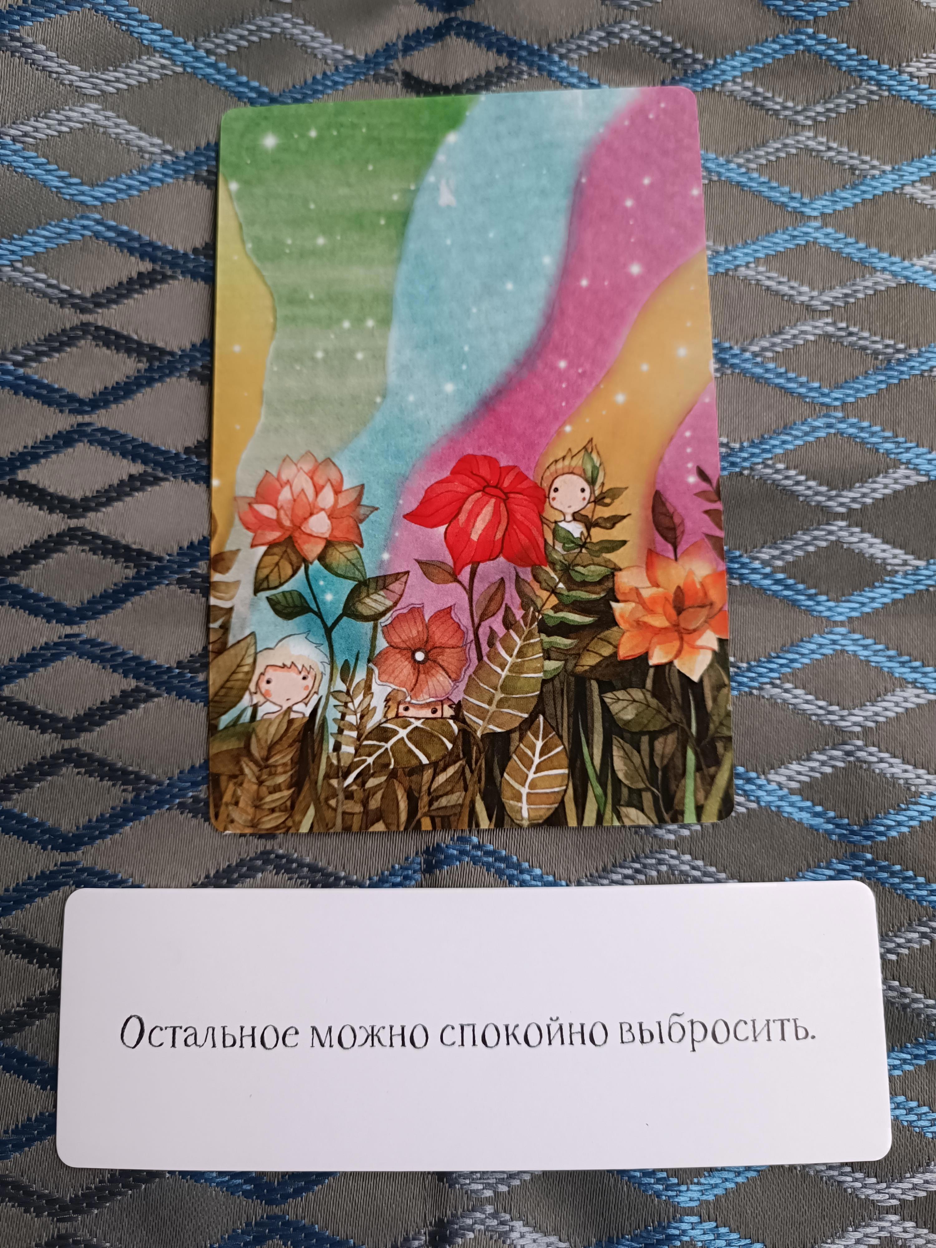 — Люблю эту карту. Она о радостях, ярких красках, солнце и цветах, звуках и вкусе жизни! О том, чем наполнена жизнь, когда ты разрешаешь ей этим наполняться. О волшебных семенах, которые прорастают до небес и дают плоды.