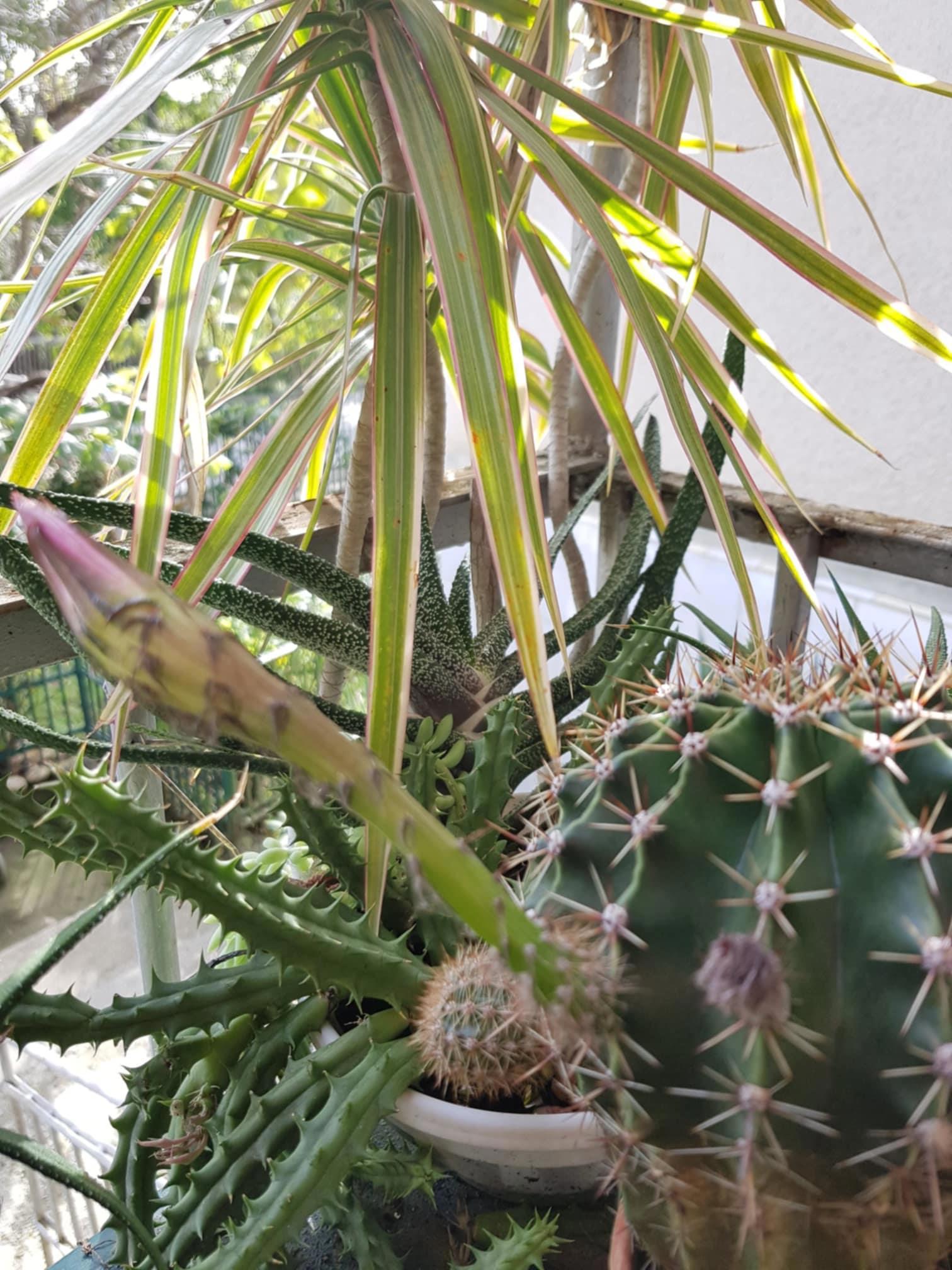 1. Каким будет цвето моего кактуса Евгения? Он уже пару раз выбрасывал стрелку с бутоном, но то ли холодно ему, то ли жарко, но стрелка усыхала. Та, что в этот раз -- самая зрелая. Но успеет ли созреть цветок, днем не больше +13, а ночью все +4. И в дом занести нельзя -- кактусы очень не любят, когда их местоположение меняют в этот период и тогда Евгений точно избавится от цветка...
