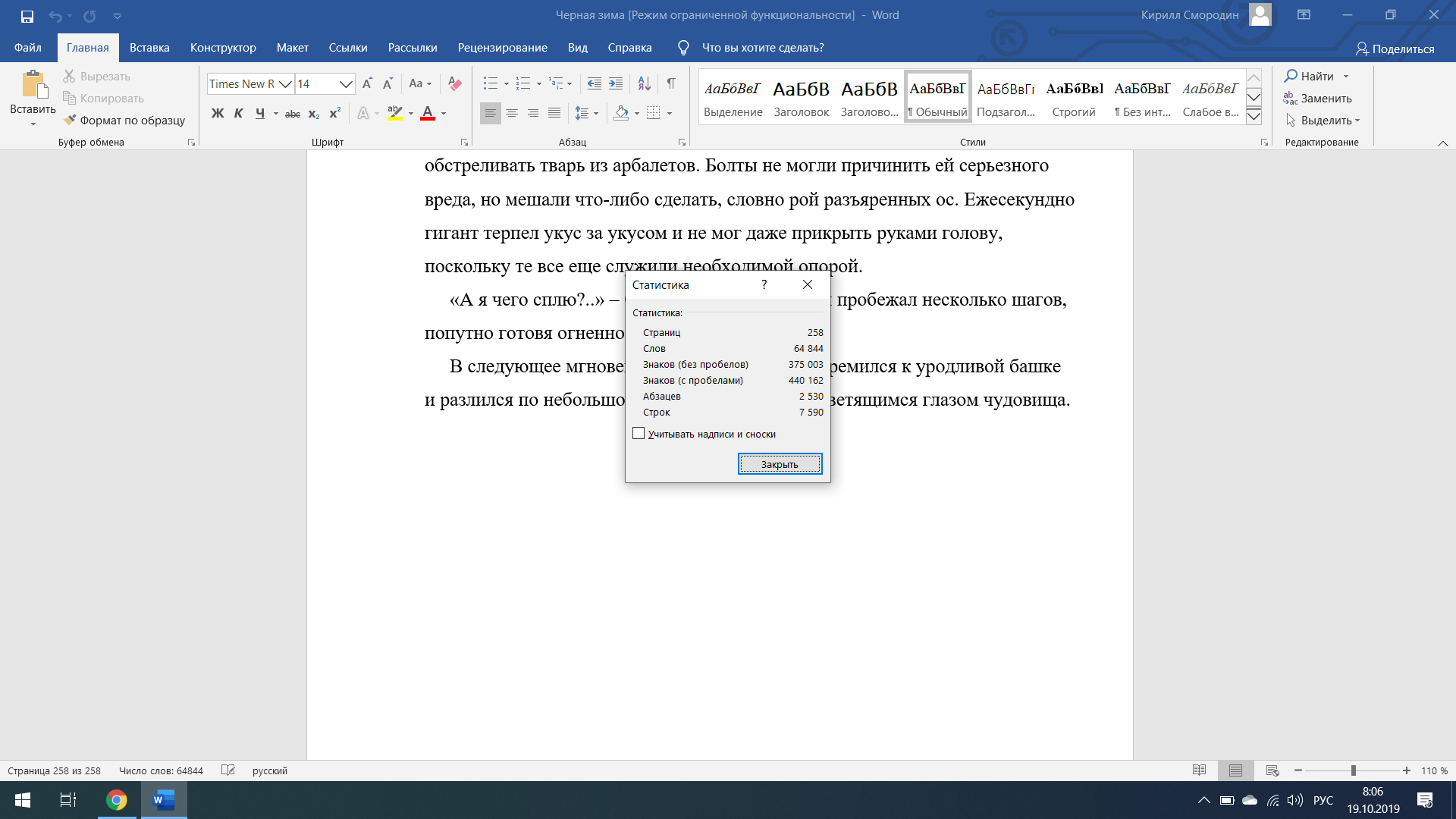 Автор: Кирилл СмородинНе так давно я хвастался, что вторая "Цифра" получилась объемнее первой. Теперь пришла пора повторить процедуру с "Учеником мракоборца". Разница пока не велика, но так и второй том еще не дописан. Сейчас повествование находится, как говорил самый знаменитый союзмультфильмовский попугай, на самом интересном месте. Посему прилагаю небольшой пруфчик - там видно, сколько буковок я уже нацарапал, название и можно чуть-чуть почитать:)