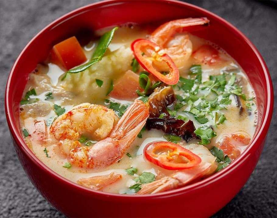 Креветки заменил говядиной, шиитаки - картошкой, имбирь - свеклой, лемонграсс - лавровым листом, кокосовое молоко - сметаной.
