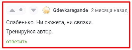 1. Игнор. Пью какой-то порошок и дичь пишу. Окей. Никакой пользы моему развитию этот комментарий не несёт, так что игнор. Либо в произведении якобы «ни сюжета, ни связки», однако нет аргументов, почему это так. В определённых случаях можно уточнить, почему комментатор так считает, и как это исправить. Но вероятность, что вам дадут аргументированные пояснения, довольно низкая.