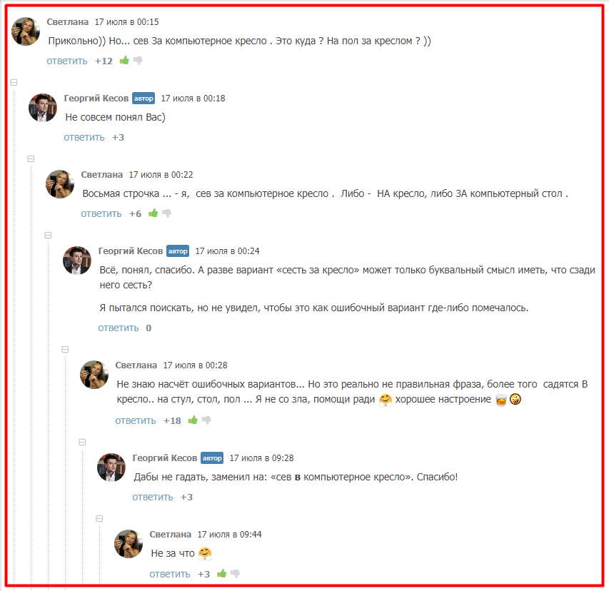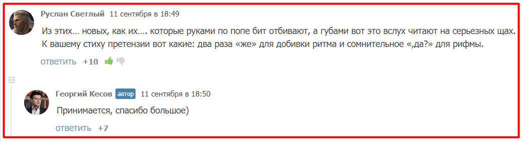 Есть такие авторы, которые даже конструктивную критику воспринимают в штыки. Уходят в отрицание, удаляют комментарии, блокируют «обидчиков». Сразу скажу: я такой подход не поддерживаю. Он убивает развитие писателя, т.к. тот не слушает справедливые замечания, и не вносит важные изменения в творчество.