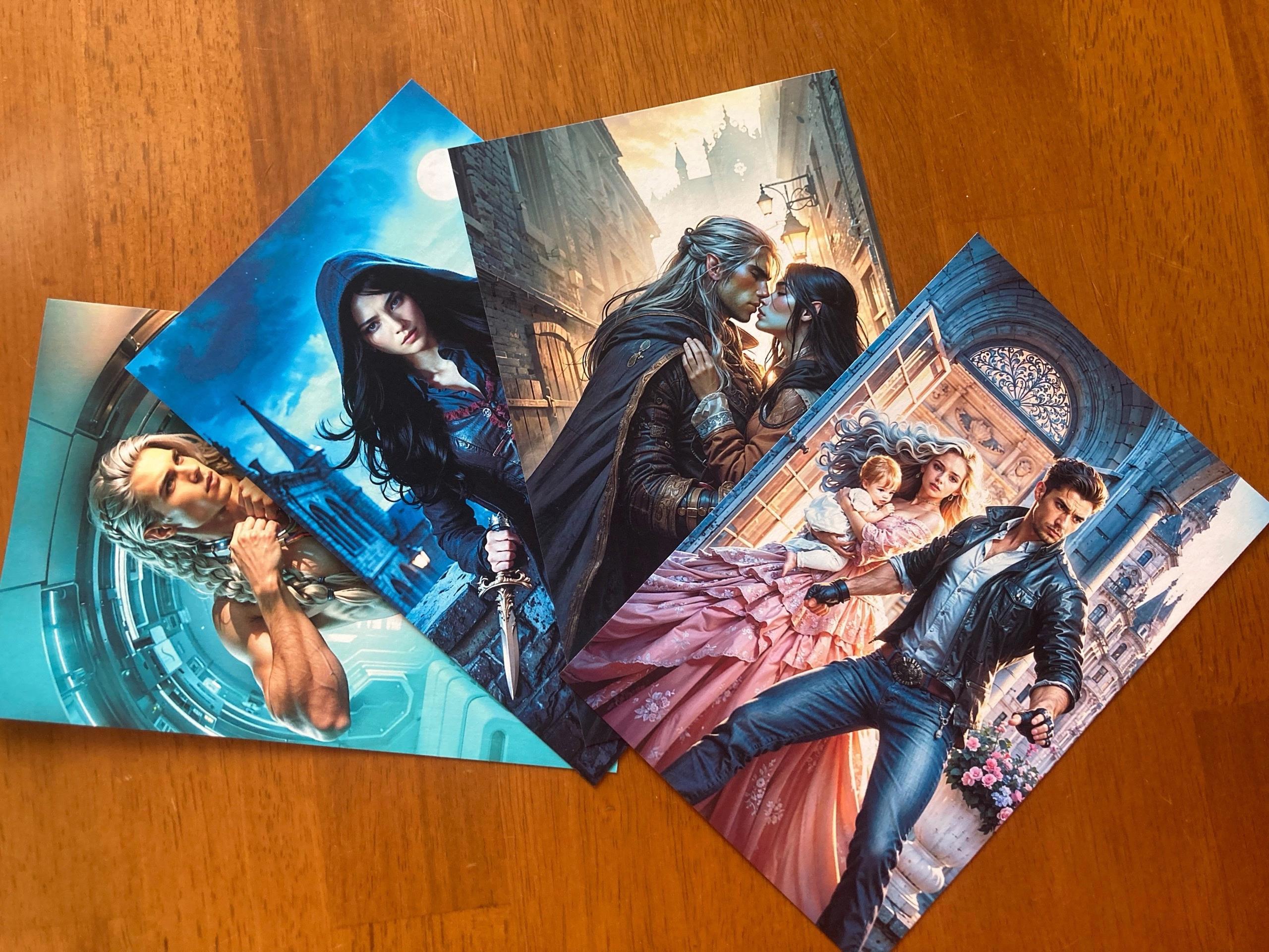 Автор: Янина НаперстокЗахотелось мне что-то, и я заказала арты к "Выбору короля эльфов", а потом напечатала открытки. А то у всех мерч, мерч... а я что, хуже, что ли?