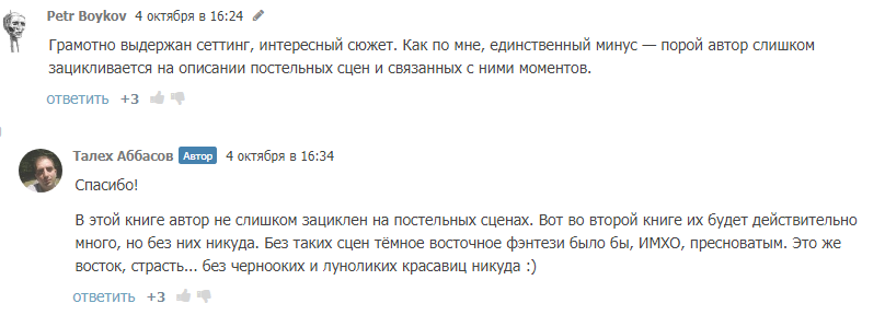 Отдельно отмечу — ни против автора, ни против книги ничего не имею. Разве что за исключением того, что ни в жанре, ни в тэгах к его текстам нет ни намека на эротику. А раз нет тэгов — то и эротики нет, значит и правила никакие не нарушаются)