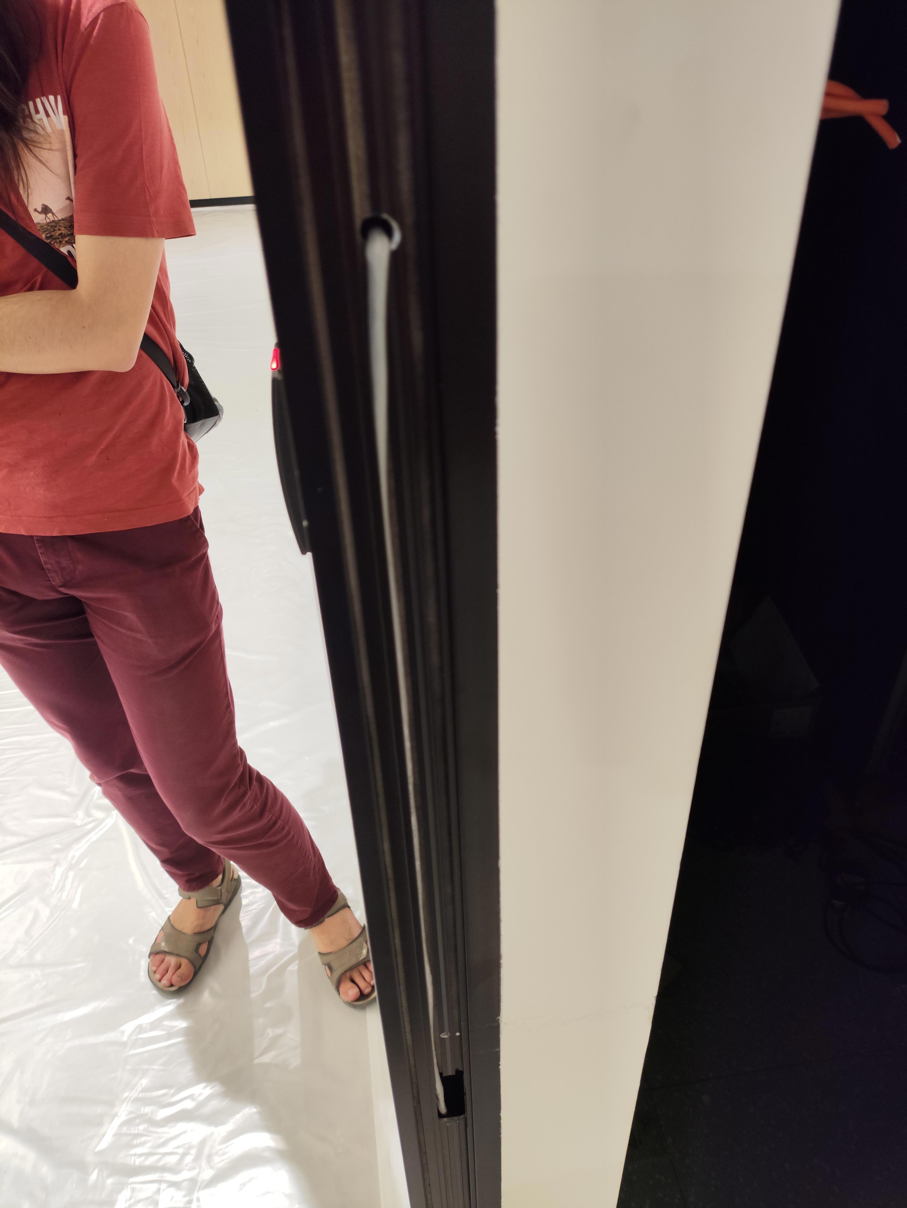 Так вот, хожу по коммутационным центрам, жалом кручу, недостатки выискиваю, рядом представители подрядчиков, уверяют меня что это нифига не недостатки, а такая фича, в общем, нормальный рабочий процесс, особенно когда все друг друга не один год знают. Ходим мы, значит, смотрим и тут я замечаю на двери в серверную, вот такое.