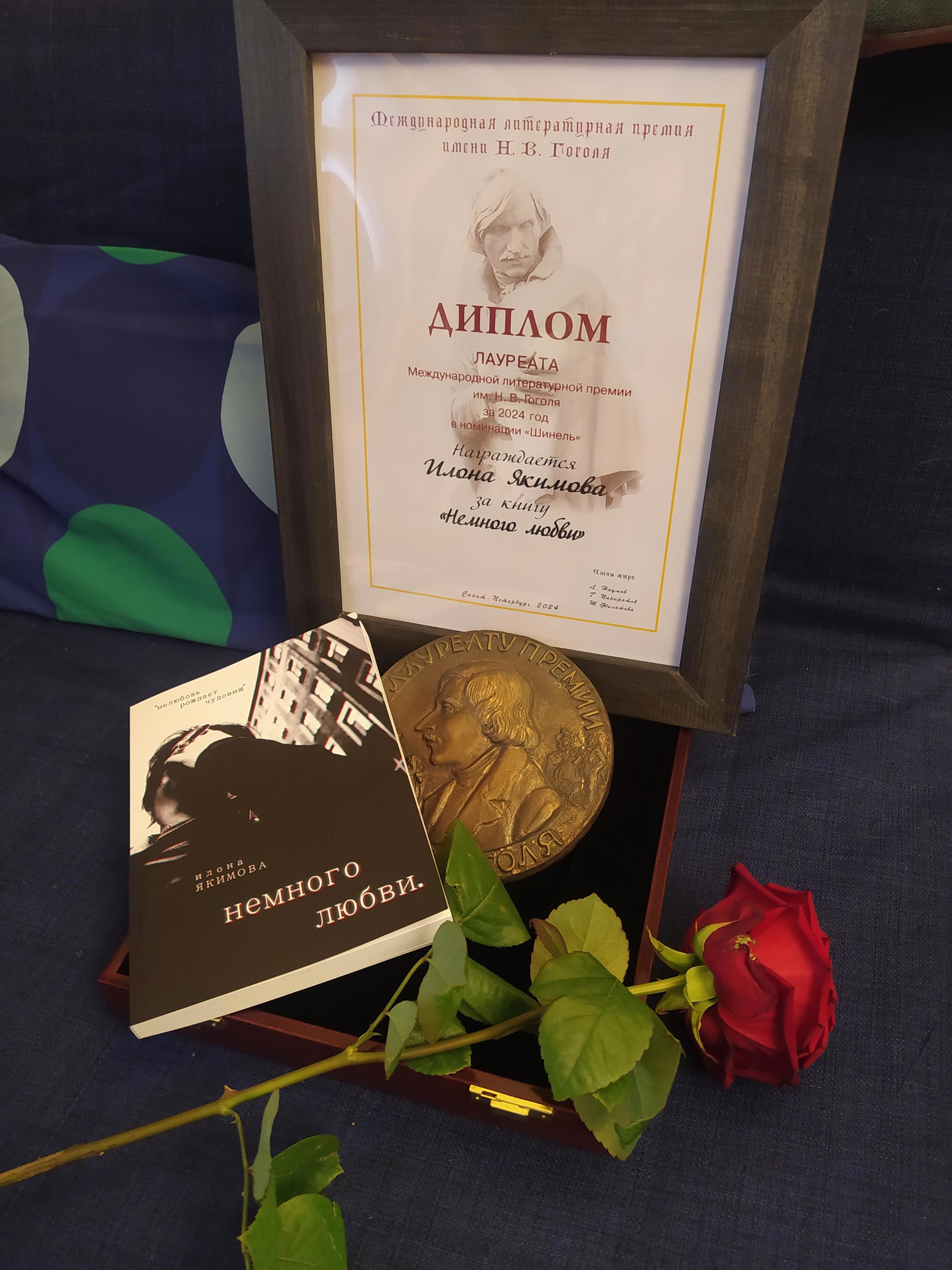 Колесо сансары вертится медленно, но верно, от sweet chariot Джаггернаута еще никто не уходил неблагославленным, и поэтому «Немного любви» - лауреат премии Гоголя за 2024 год в номинации «Шинель». И теперь у меня есть цветочек, диплом и большая чугунная бронзовая кмк медаль, которую я могу метать на дальность. Например, в тех же ктырей.
