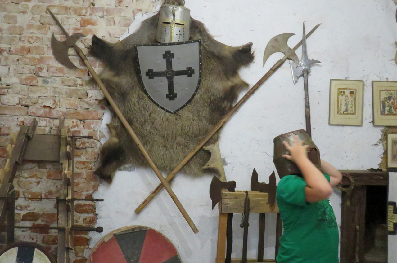 В этом здании находится местный музей. Все экспонаты являются репликами, но зато их можно трогать, надевать и мерить.