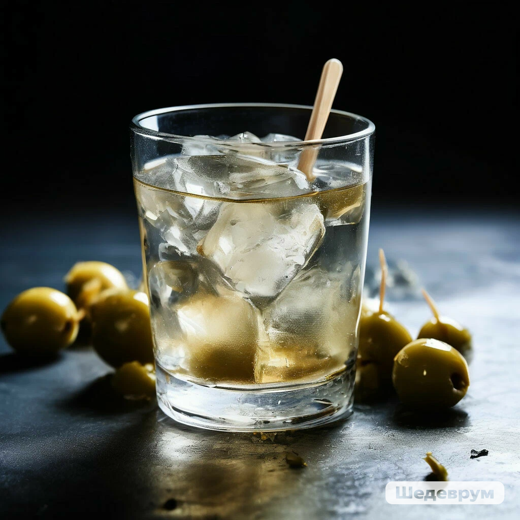 Украшение: Сморщенная оливка играющая роль изюминки в напитке.