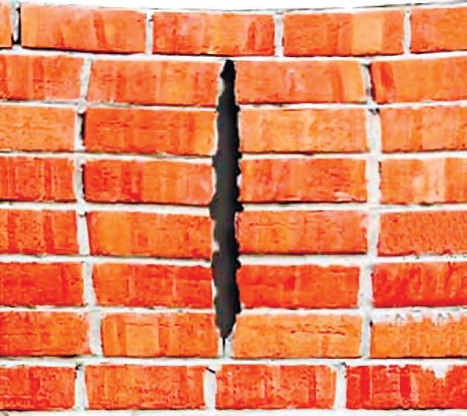 Вот, что бывает с кирпичной стеной, если кирпичи укладывать без перевязки.