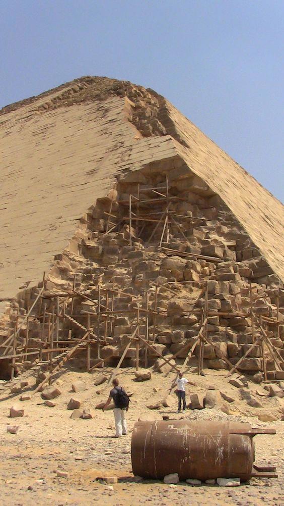 На примере ломаной пирамиды мы видим, что качественные блоки только снаружи, а внутри всякий каменный лом вперемешку с песком.