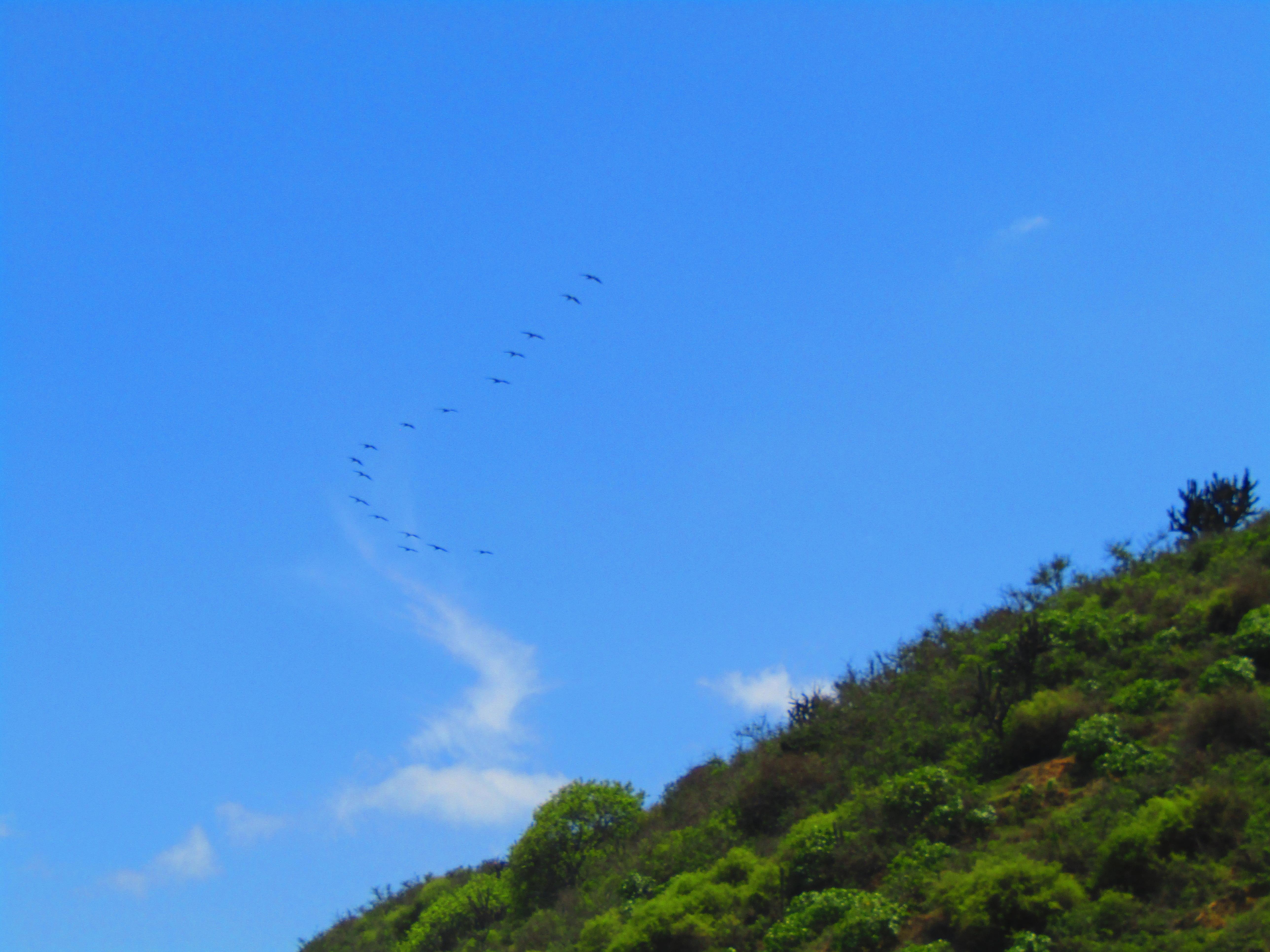 Если у кого глаза хорошие - пеликаний клин как есть; совпадает формой с облаком: