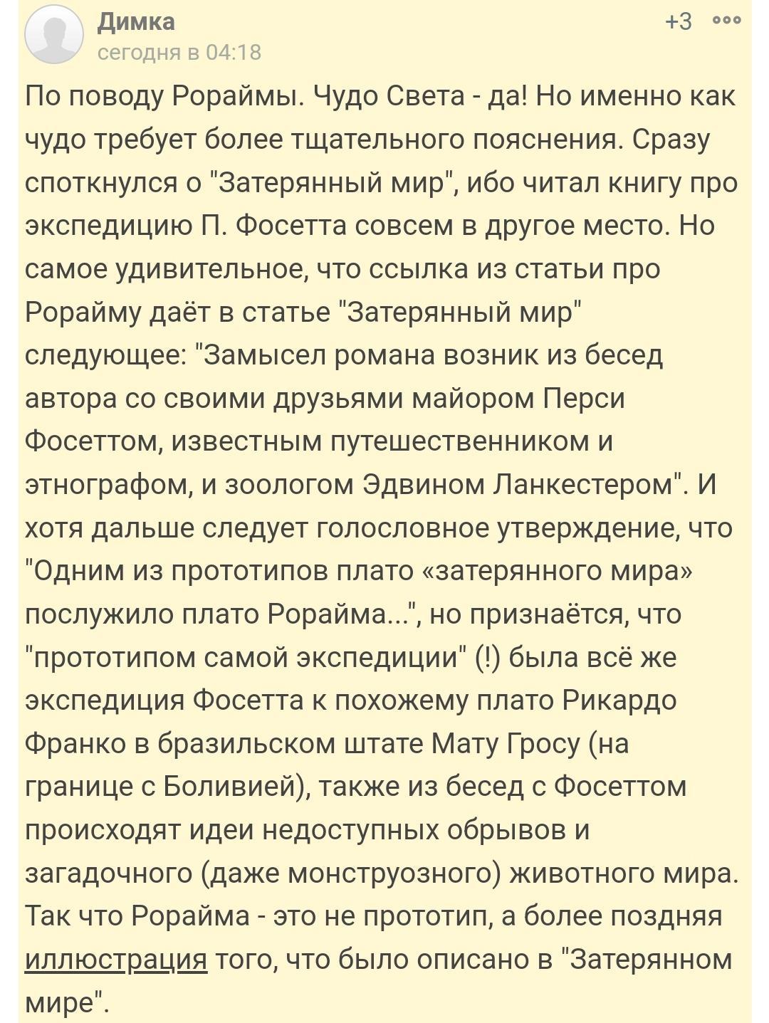 Гора Рора́йма (Tepuy Roraima) — столовая гора (тепуи) в Южной Америке. Расположена на Гвианском нагорье в юго-восточной точке Национального парка Канаима на стыке Бразилии (штат Рорайма), Венесуэлы (Национальный парк Канаима) и Гайаны (высочайшая точка страны). Высота в точке соединения границ (тройной пункт) с координатами 5°12′08″ с. ш. 60°44′07″ з. д.HGЯO составляет 2723 м над уровнем моря. Площадь вершины Рораймы составляет около 34 км². В районе Рораймы берут начало реки бассейнов Ориноко, Амазонки и Эссекибо. Впервые была описана сэром Уолтером Рэли в 1596 году. Отчёты последующих экспедиций в район горы вдохновили Артура Конан Дойла на написание романа «Затерянный мир".