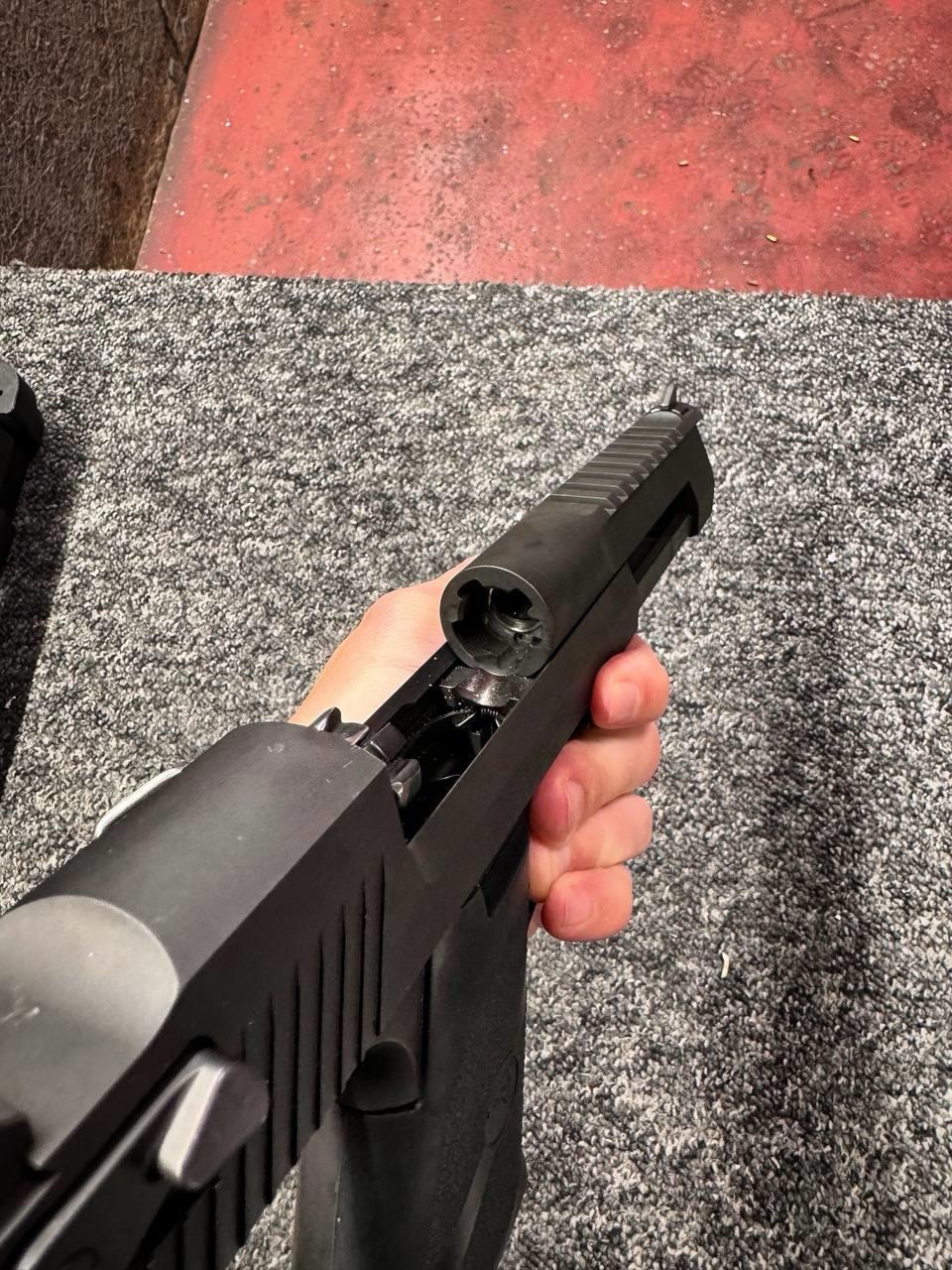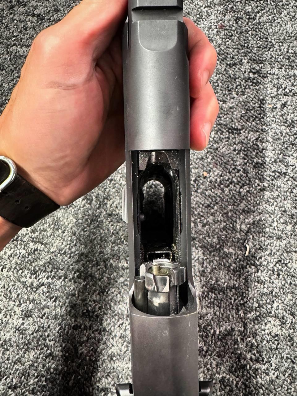 В итоге там какой-то стерженёк отвалился и болтался в передней части ствола, между направляющими. Но то что он сломаным продолжал стрелять это хорошо.