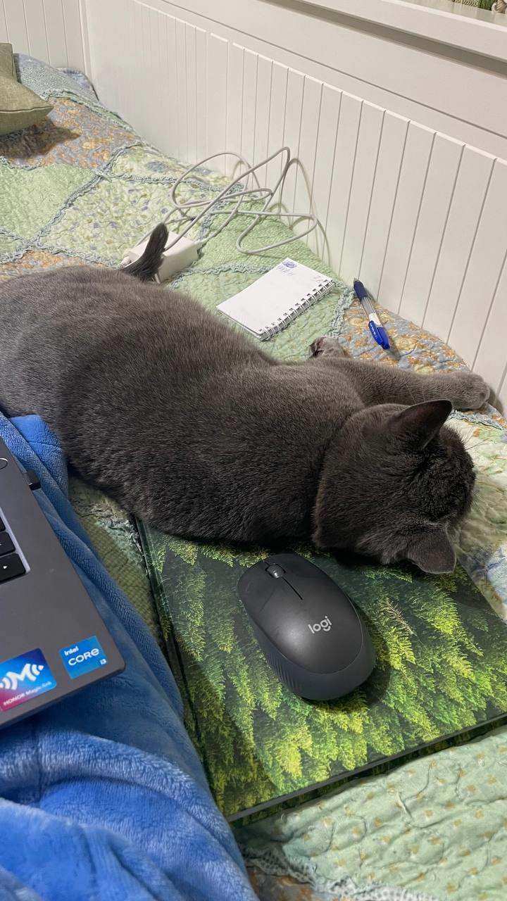 Вот такой у меня помощник для работы. Правда он больше меня мотивирует на безделье.