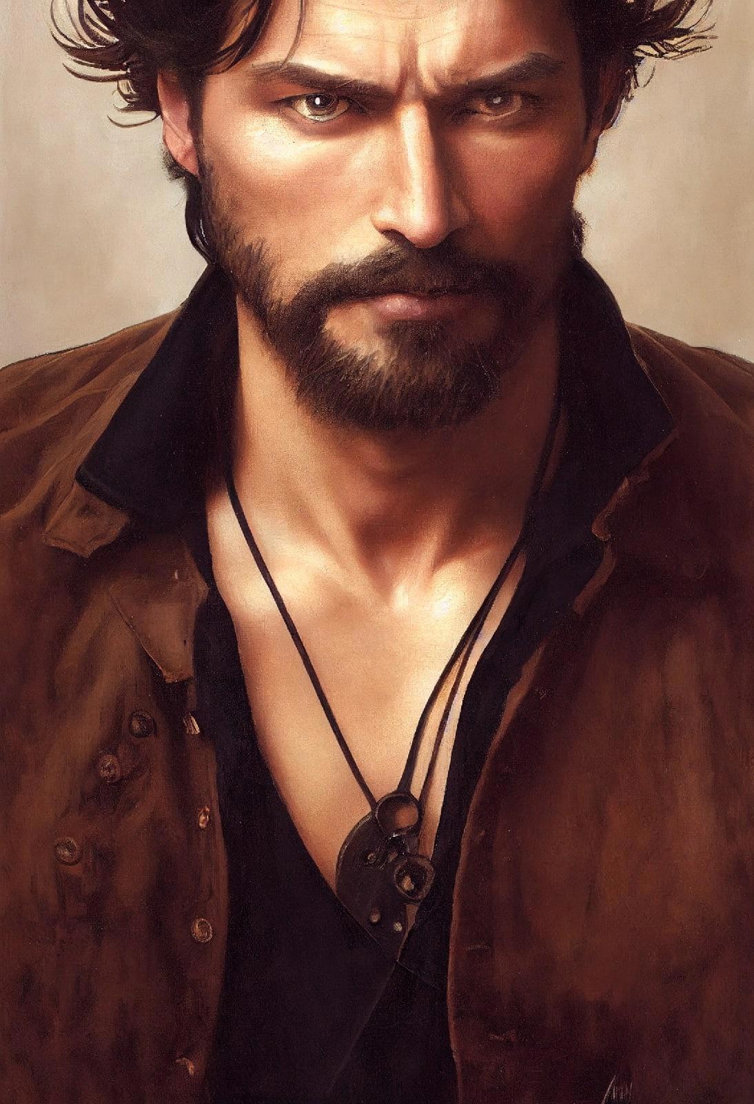 "Адмирал пристально рассматривал своего подчиненного. Первый помощник Хольт был прекрасно сложен, на поясе висели меч и кинжал. Сэр Оливер неоднократно был свидетелем мастерства, с которым его помощник пускал их в ход. Черные волосы были собраны в пучок на затылке. Ястребиный взор подчеркивался черными зрачками глаз. Как и его капитан, он носил небольшую бородку, но выглядела она куда более ухоженной. Природное обаяние предрасполагало к нему собеседников, чем мистер Хольт блестяще научился пользоваться".