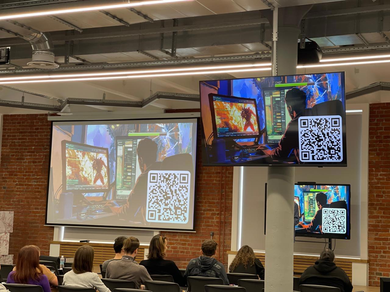 На днях я презентовал книгу на фестивале геймдизайна в Высшей школе бизнеса ВШЭ. На огромном экране. Красиво)