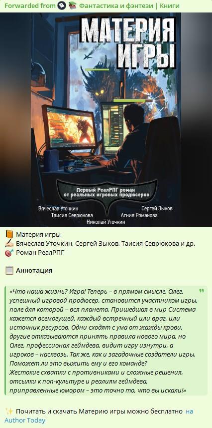 - Многие мои друзья не читают книги, а слушают их. Уверен, что у книги было бы больше аудитории, если бы была аудиоверсия. Стоимость её создания варьируется от 40 до 80 тысяч рублей. У меня уже есть предварительные договорённости с Литнет, что они озвучат и издадут аудиоверсию книги. Надеюсь, всё получится, и те, кто предпочитает слушать книги, тоже смогут насладиться "Материей игры". Если кто-то из читателей этой статьи хочет на энтузиазме сделать озвучку для размещения на AT — пишите мне в личку!