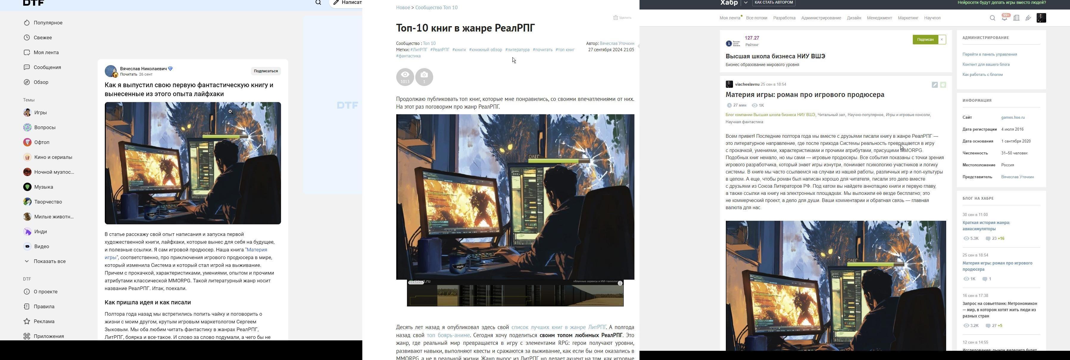 Я запустил свой телеграм-канал о писательстве глазами игрового продюсера и буду рад, если на него подпишитесь. У меня также накоплено множество медиаканалов, связанных с игровой индустрией, и есть поддержка от друзей в этой сфере. Благодаря этому, наша книга попала в рассылку на 15 тысяч человек — слушателей и выпускников наших образовательных программ по геймдеву, а также в телеграм-каналы и ВК-группы, связанные с игровой индустрией, как мои собственные, так и партнерские. Отдельные лучи добра — игровому порталу Goha, который поддержал проект. К тому же, книга появилась на канале блогера Даши Островской, которая стала прототипом одного из героев. И мы сделали презентацию книги в собственном игровом подкасте "Хочу в геймдев".