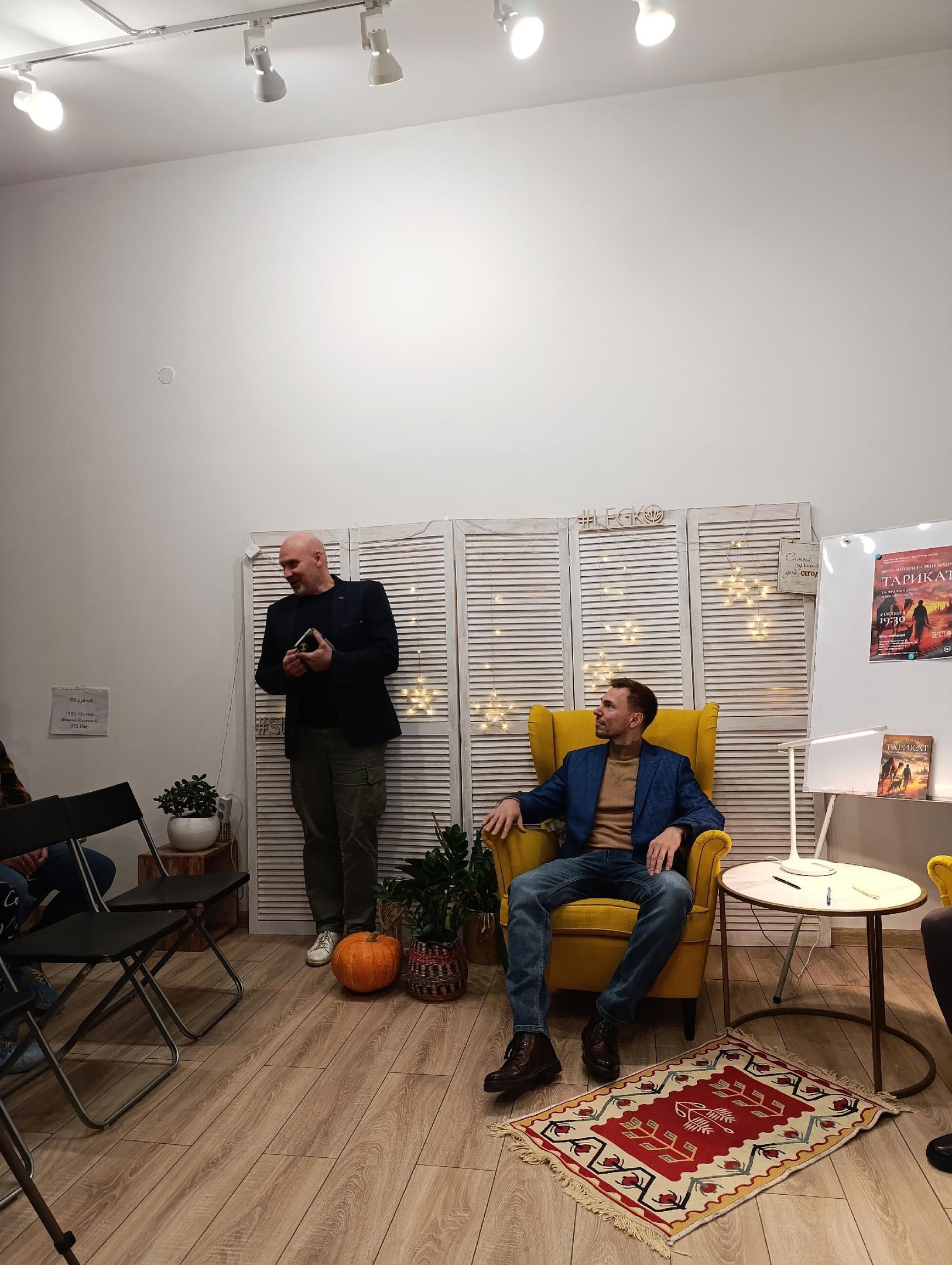А вот презентация совершенно другое дело. Каждый гость, переступивший порог арт-пространства, где проходила встреча, вселял в меня уверенность и разжигал кураж. Каждого я воспринимал как подарок свыше и старался быть радушным хозяином (надеюсь, мне удалось:) Ваши взгляды, ваши улыбки и, конечно, вопросы – все это наполняло меня совершенно особым чувством ликования и глубокого внутреннего удовлетворения: я смог, я красавчик, я на своем месте.