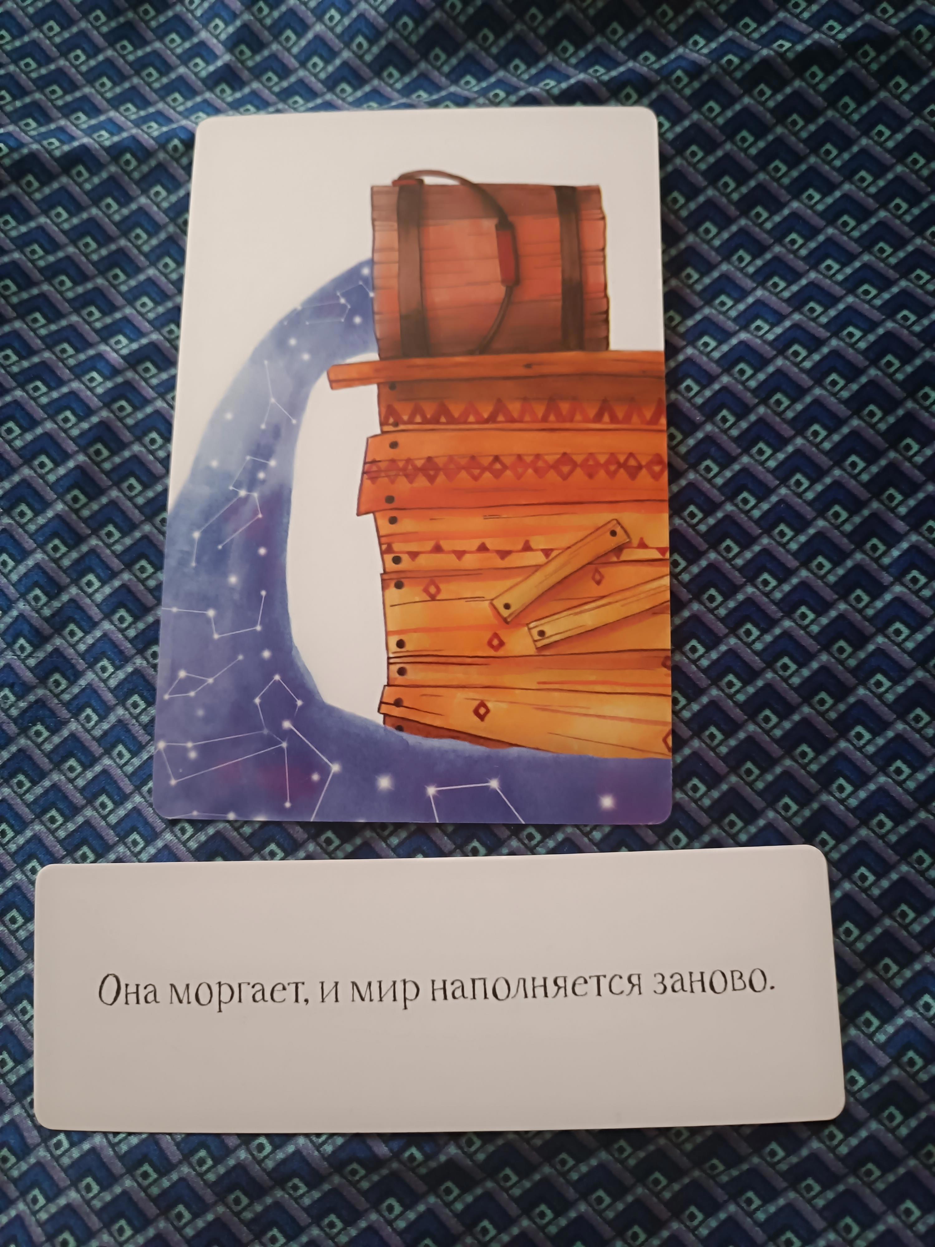 В руках Ари её любимый инструмент — метафорические ассоциативные карты. Слушая Вадима, она перетасовывает их и вытягивает для него ту самую.