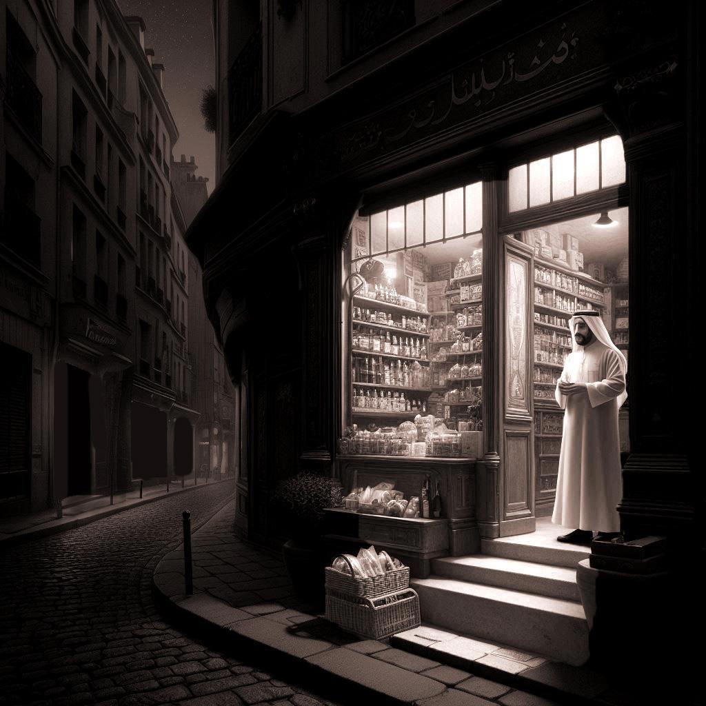 И вдруг впереди – ярко освещенная, открытая дверь лавочки. Как единственное горящее окно в ночи. У входа мирно беседуют араб и француз.