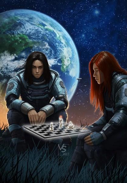 Вторая несуразность, бросающаяся в глаза. Фигурки на доске не похожи на стандартные, но всё равно вопрос: почему они одного цвета?! Может, я всё напутал, и это просто такой авантажный столик с не менее причудливой закуской? Да нет. Шахматы (или что там) явно виртуальные, угощаться голограммами закусок как-то чересчур даже для фэнтези.