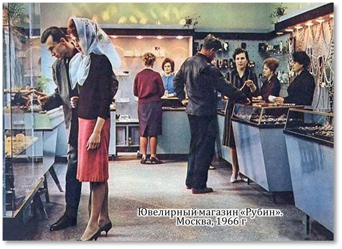 В конце 70-х вообще простые кольца купить было нельзя, только с камнями, которые ломбарды не принимали. Камни чаще всего оказывались искусственными, а стоили нередко дороже золота. Я как-то в середине 80-х пытался сдать мамино кольцо с большим рубином. Золото приняли на вес по цене в разы дешевле той, чтобы была в ювелирном магазине, а камень посоветовали выбросить: просто стекляшка. Хотя кольцо было куплено в официальном советском магазине. Накрутка государства на изделия с камнями могла доходить до 1000%.