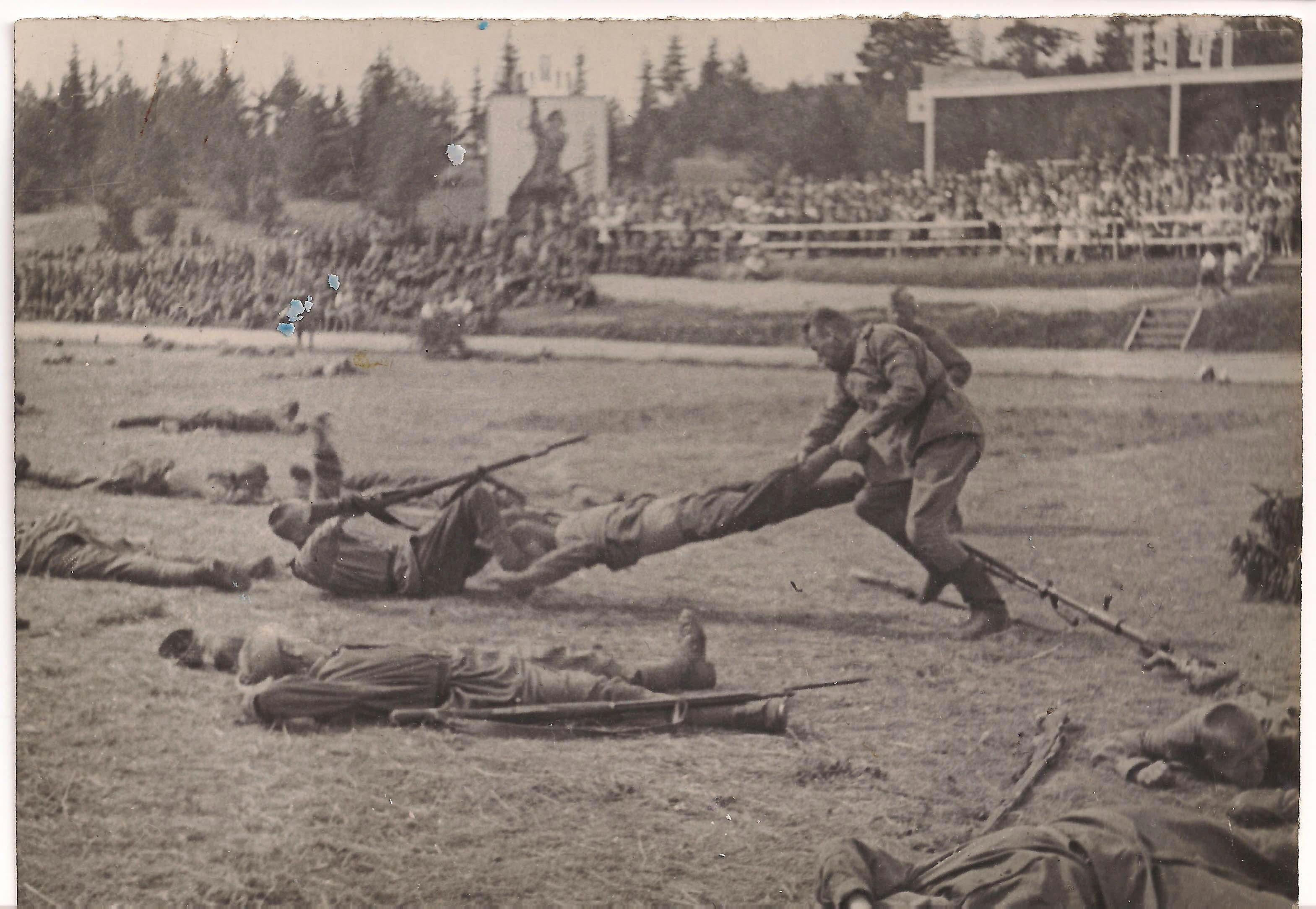 Автор: Николай БергНашел фото, которые странно напомнили рыцарские турниры. Только на фото - явно красноармейцы. но что это зрелищное соревнование с болельщиками - определенно. При этом проигравшие и "убитые" - уже смирно лежат на поле брани, а фотограф запечатлел финальные поединки - уже практически победителей.