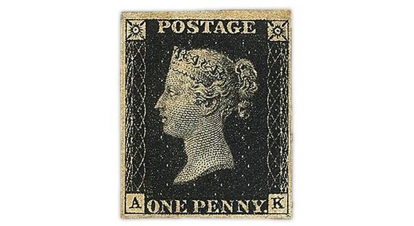 Первая почтовая марка "Чёрный пенни". Марками оплачивали пересылку и получение корреспонденции. Фотография взята из интернета.