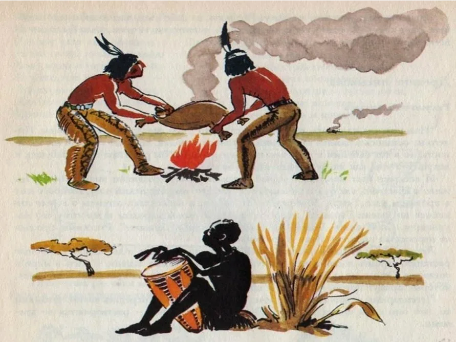 А в Африке для быстрой передаче новостей на расстоянии использовались барабаны и там-тамы. Таким образом передавались довольно подробные послания. По понижению и повышению тона, громкости, частоте ударов принимающая сторона прекрасно расшифровывала послания. Чем-то это напоминало ещё не появившуюся азбуку Морзе.