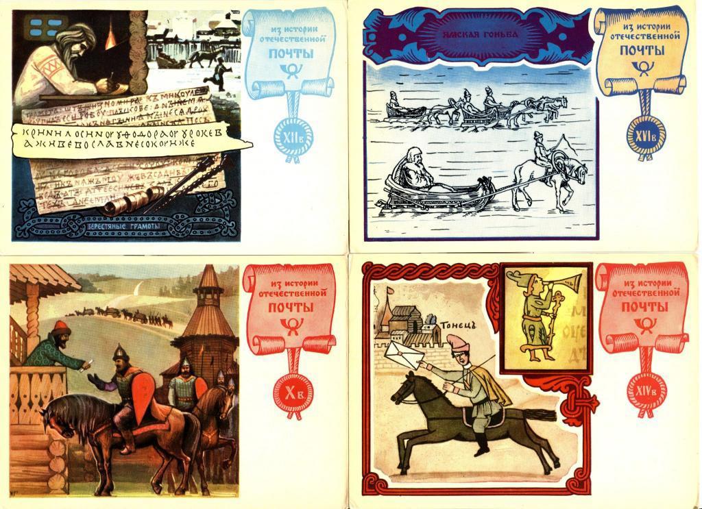 А что же у нас? На Руси? Судя по огромному количеству берестяных грамот, люди на Руси были грамотными и активно вели переписку. Следовательно, можно предполагать, что и грамотки эти кто-то доставлял. Но всё-таки, первые документальные упоминания о почте относятся к IX веку. Тогда в русских летописях впервые появились слова «послали весть». А в XIII веке письма уже отправляли регулярно. Во времена монголо-татарского ига русские переняли их систему почтовых отправлений. Отсюда наши ямы - постоялые дворы с чиновниками, которые проверяли подорожные и выдавали свежих лошадей.
