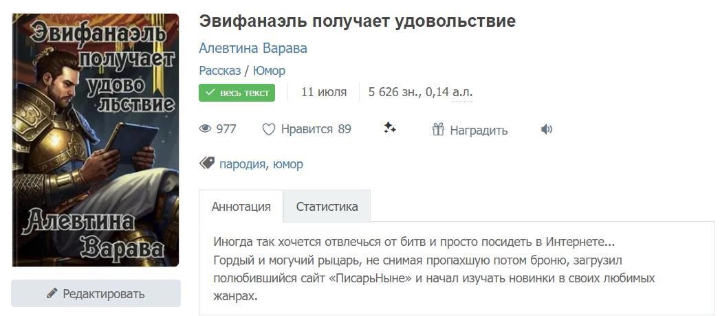 Гордый и могучий рыцарь, не снимая пропахшую потом броню, загрузил полюбившийся сайт «ПисарьНыне» и начал изучать новинки в своих любимых жанрах.