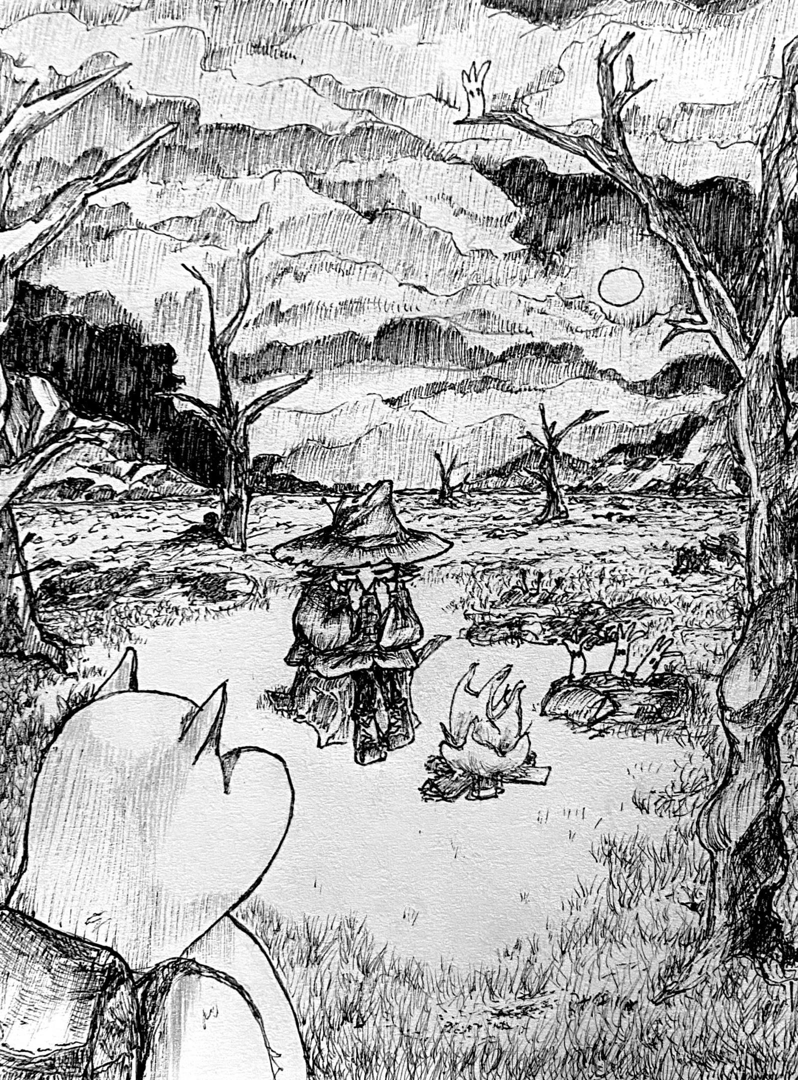 Спустя несколько дней, находясь в поиске ночлега, они в итоге пришли на подозрительно тихое поле.