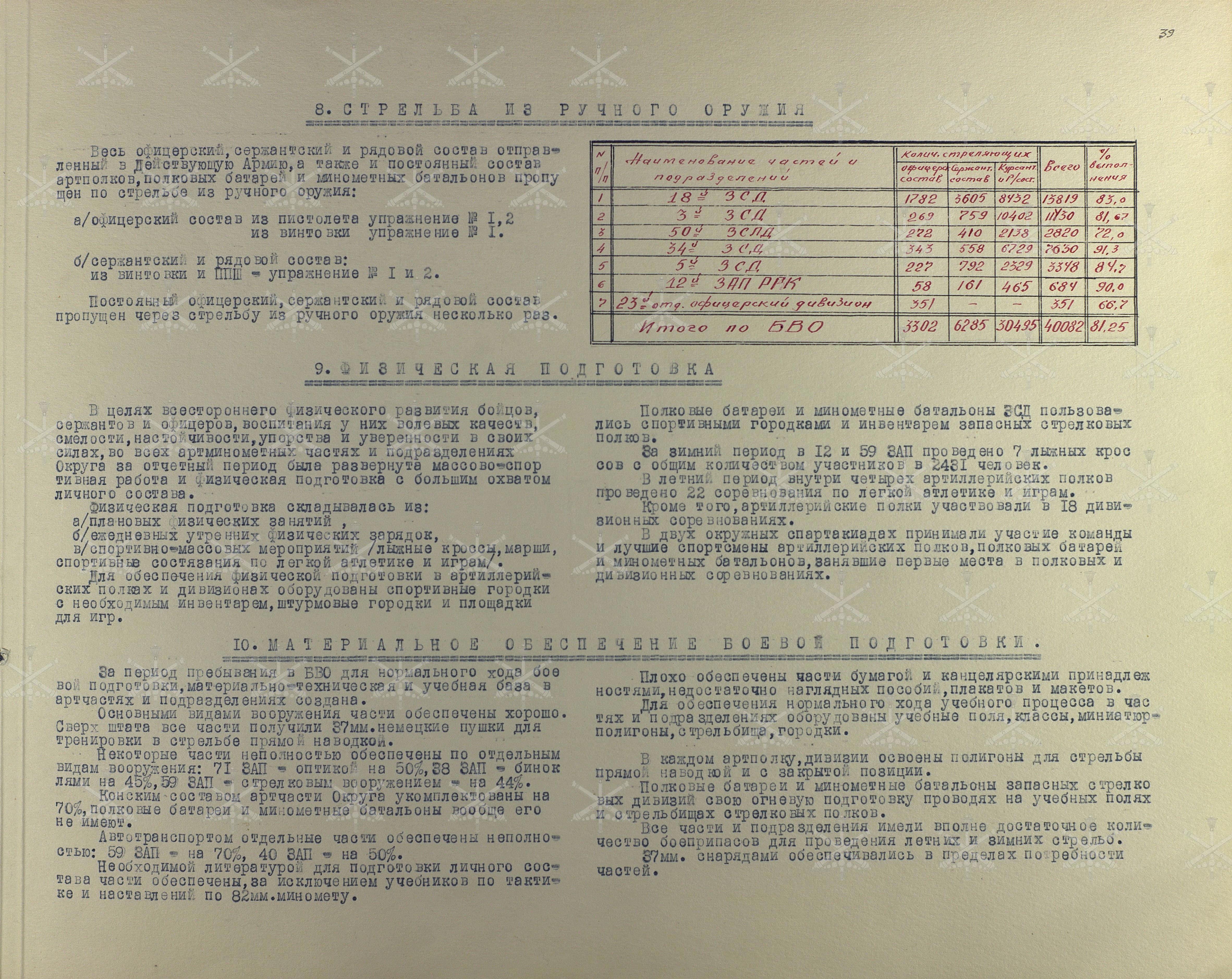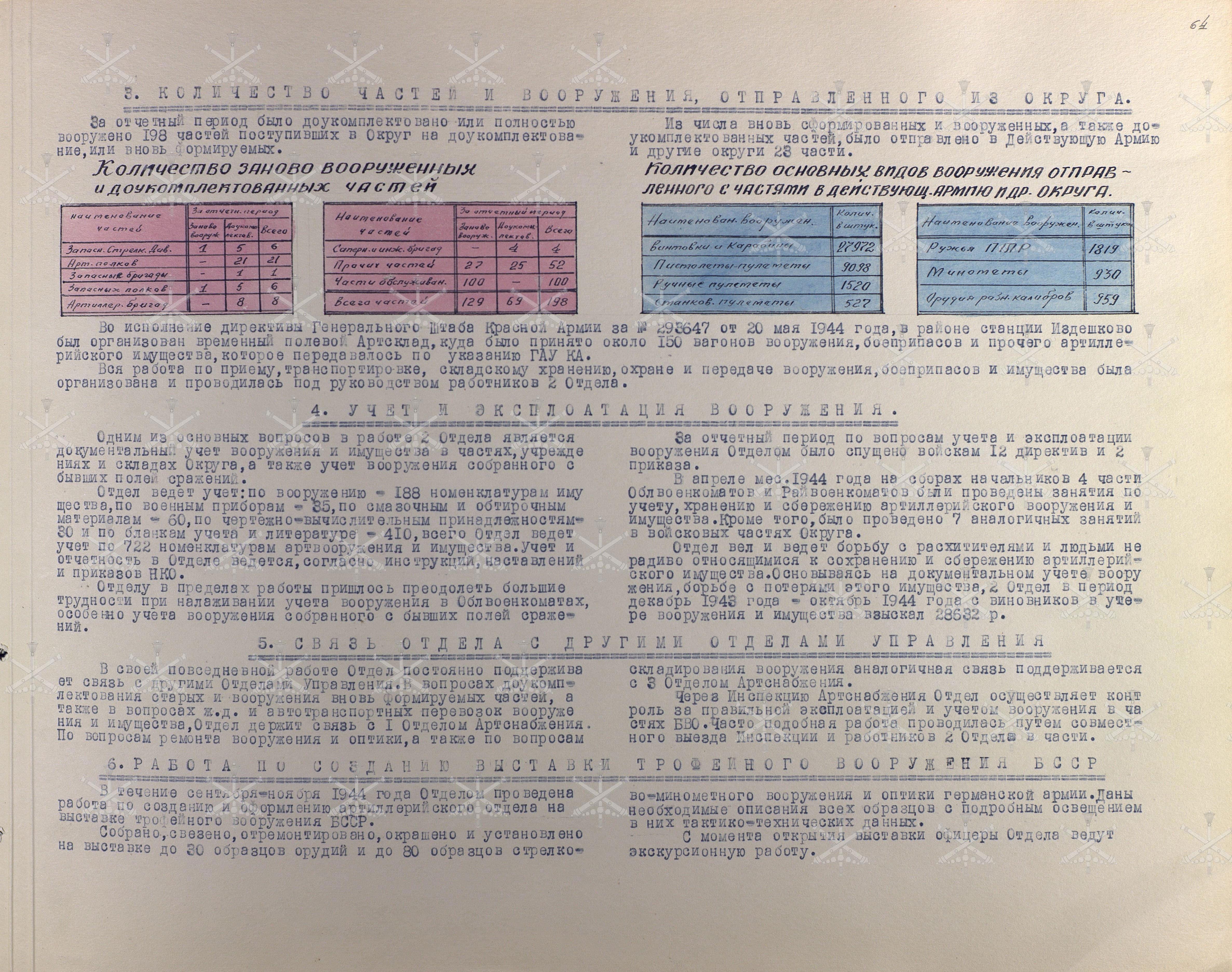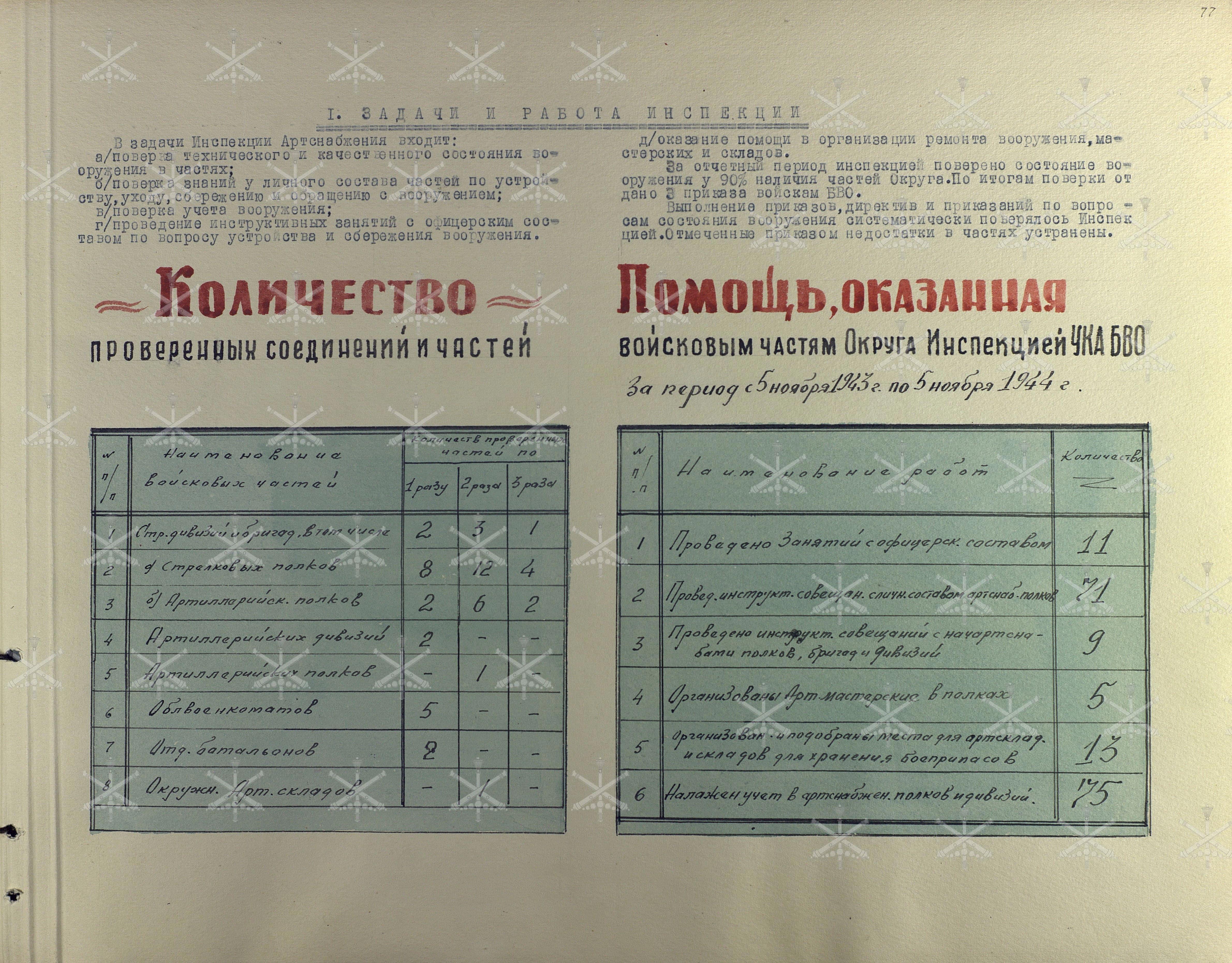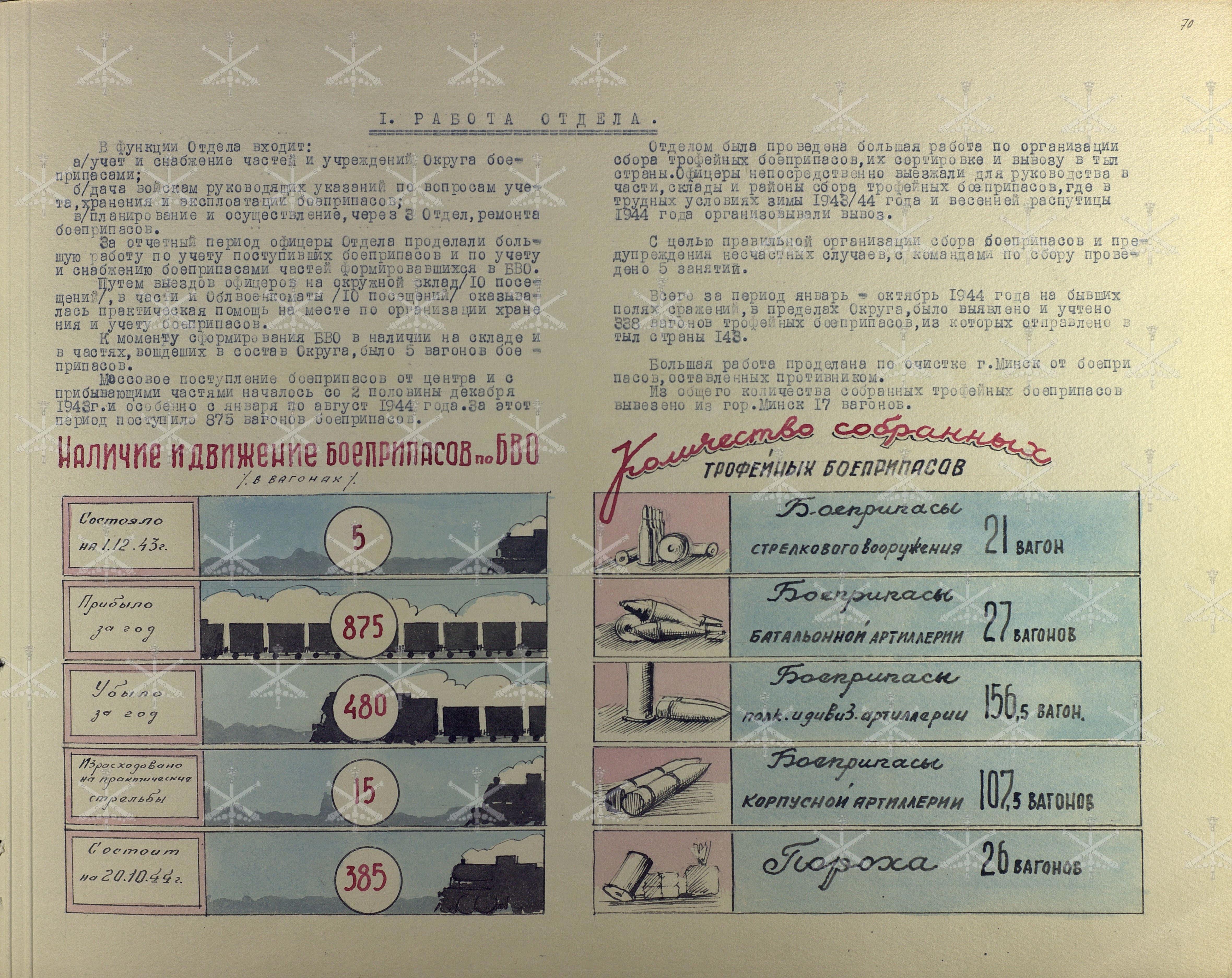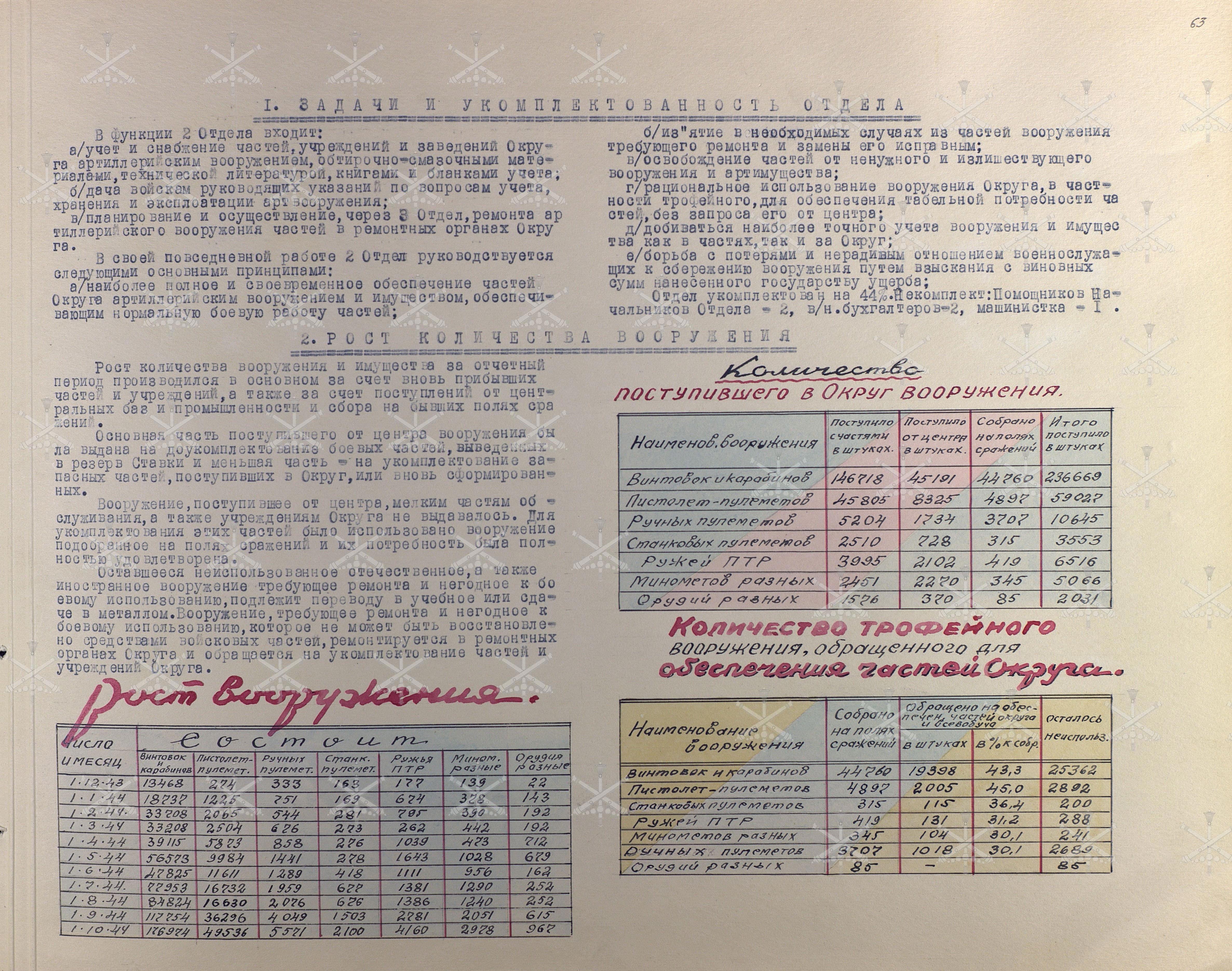 Во-первых - это структура и функции подразделений довольствующей службы округа. Если сравнить задачи отделов артиллерийской службы БВО с задачами любой другой службы, то можно найти немало схожего. Взять тех же интендантов. В службах снабжения тоже есть подготовка, только не боевая, а специальная, точно также они занимались учётом материальных средств, проверка обеспеченности частей, принимая меры по доукомплектованию, так же готовили и подбирали кадры, собирали трофеи и т.п.