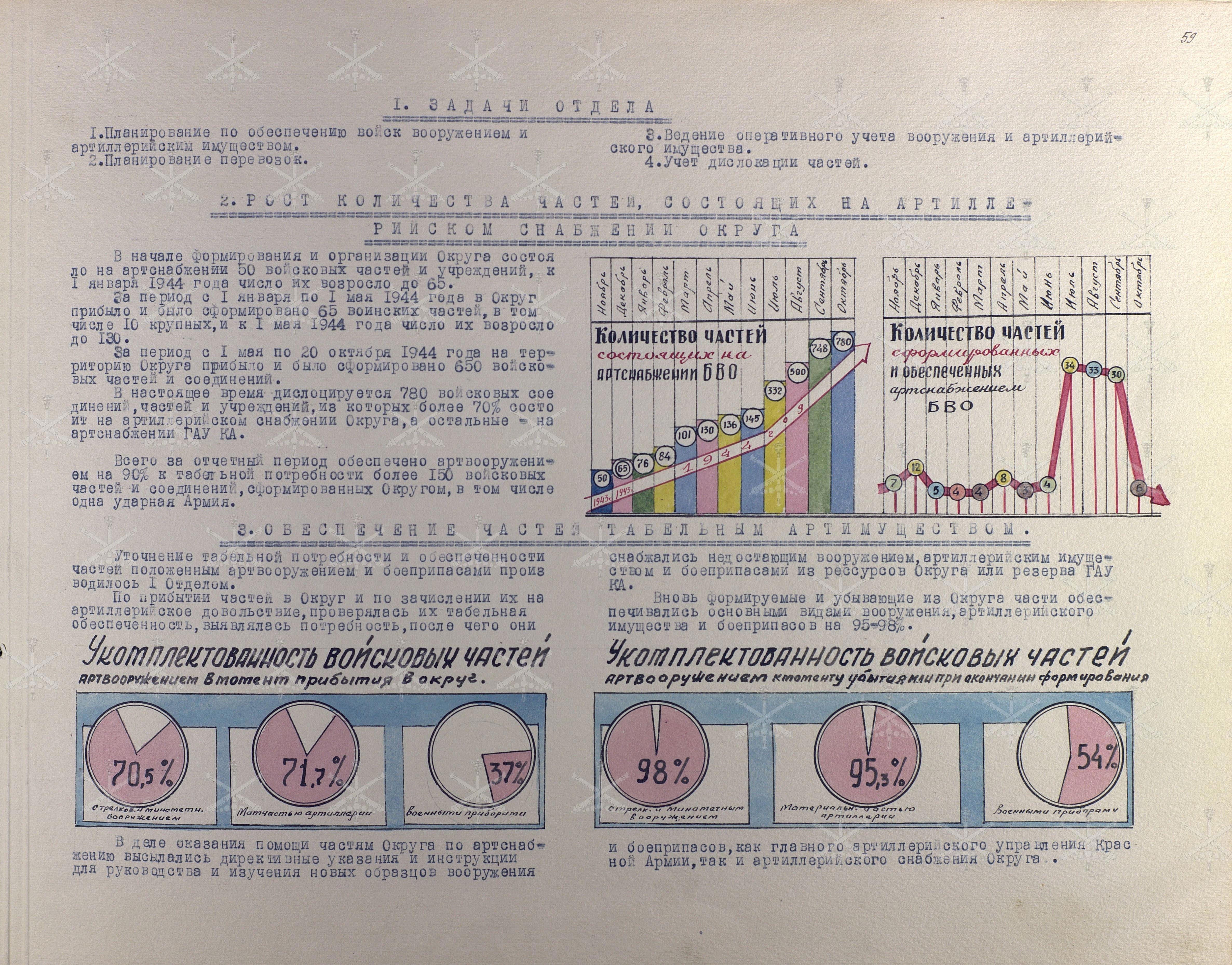 Работая в ЦА МО, я не раз встречал различные отчёты и доклады, но настолько интересно оформленных документов не встречал. Если и попадаются работы, выполненные художниками, то это, как правило, титульный лист, карты и схемы. Но, моему знакомому, работающему в архиве ГАУ повезло больше.