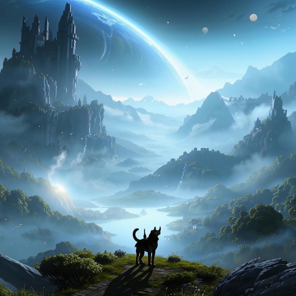Ну ладно, космос есть, замок есть, природа есть (правда, у меня больше равнинные леса, но допустим). Даже условная гончая есть (рогатая, видимо, потому что инопланетная)). Но дракон-то где?
