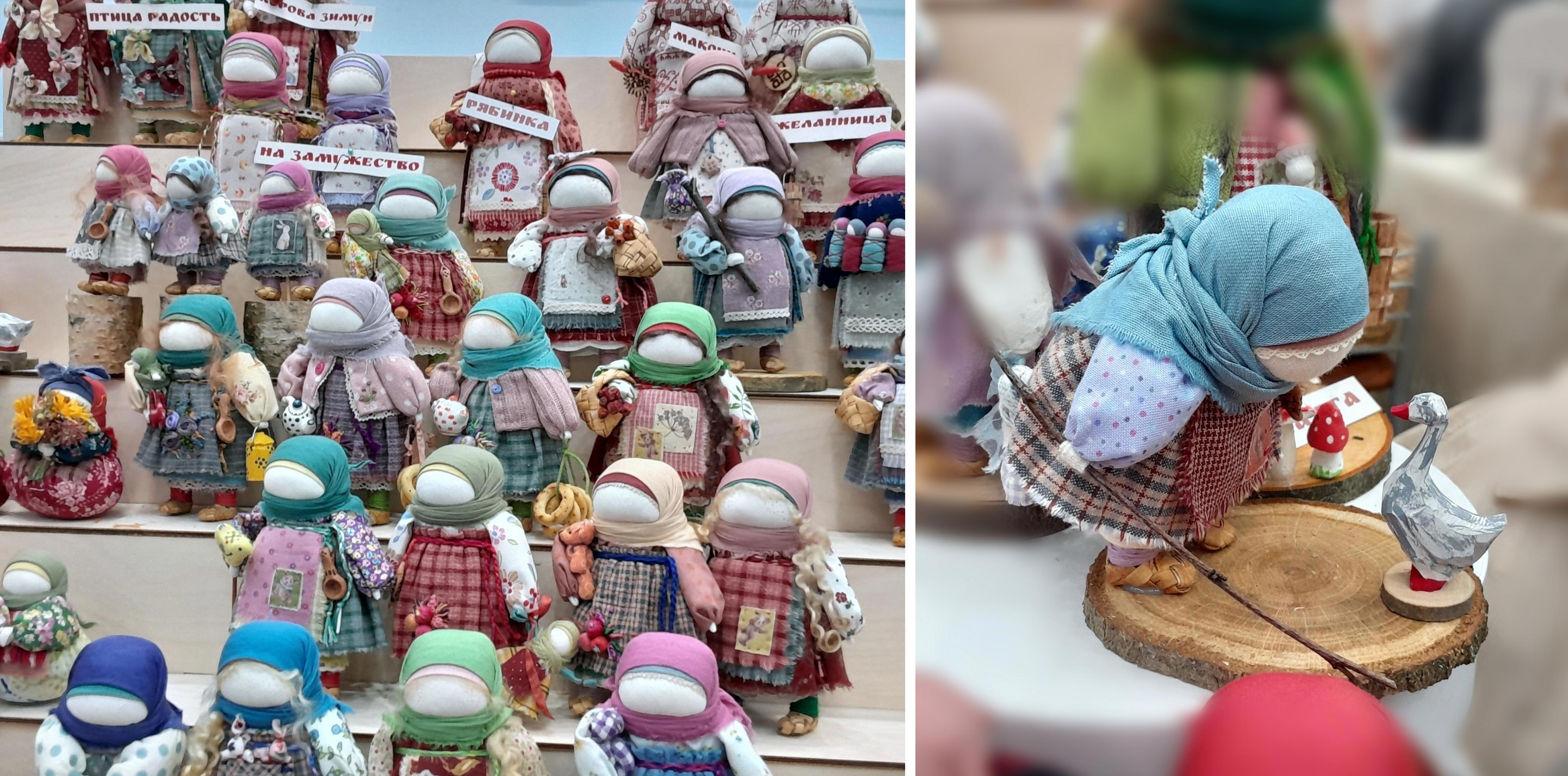 Куклы-мотанки или обережные куклы. При их изготовлении исключены ножницы и иглы. Я когда-то делала именно так, по всем правилам. Как делала мастерица я спросить постеснялась... Очень милые!