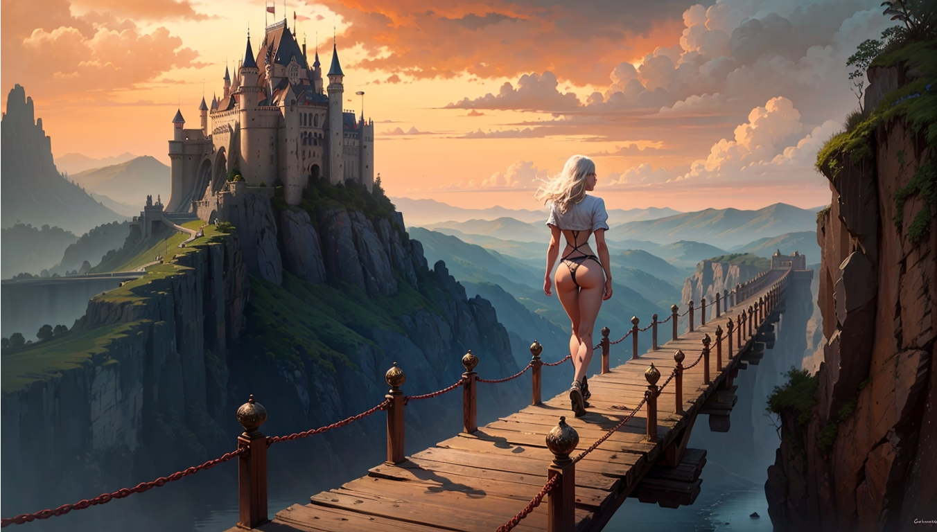 Автор: Сергей ЧеВарганил на днях картинку к очередной главе впроцессника. И задание-то простое было. Голая блондинка в темном подземелье идет по узкому мосту через пропасть, раскинув руки для равновесия. Мост шириной полметра, без перил и ограждений.