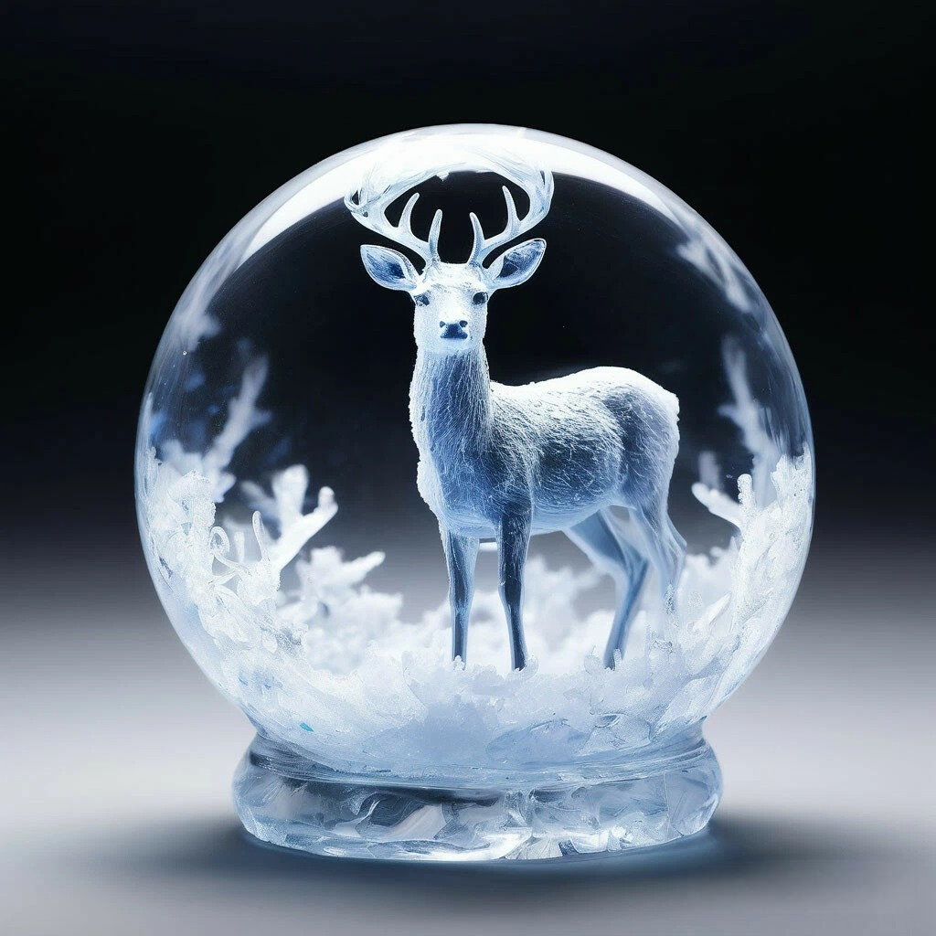 Второй предмет представлял собой шар, такой же, в котором был цветок, подаренный на балу, но в этот раз внутри был лёд. Да не просто лёд, а в форме фигуры оленя, с ветвистыми рогами и статным силуэтом. Он был почти как живой. К этому шару прилагалась записка, написанная размашистым с завитками почерком принца: «разбей его».