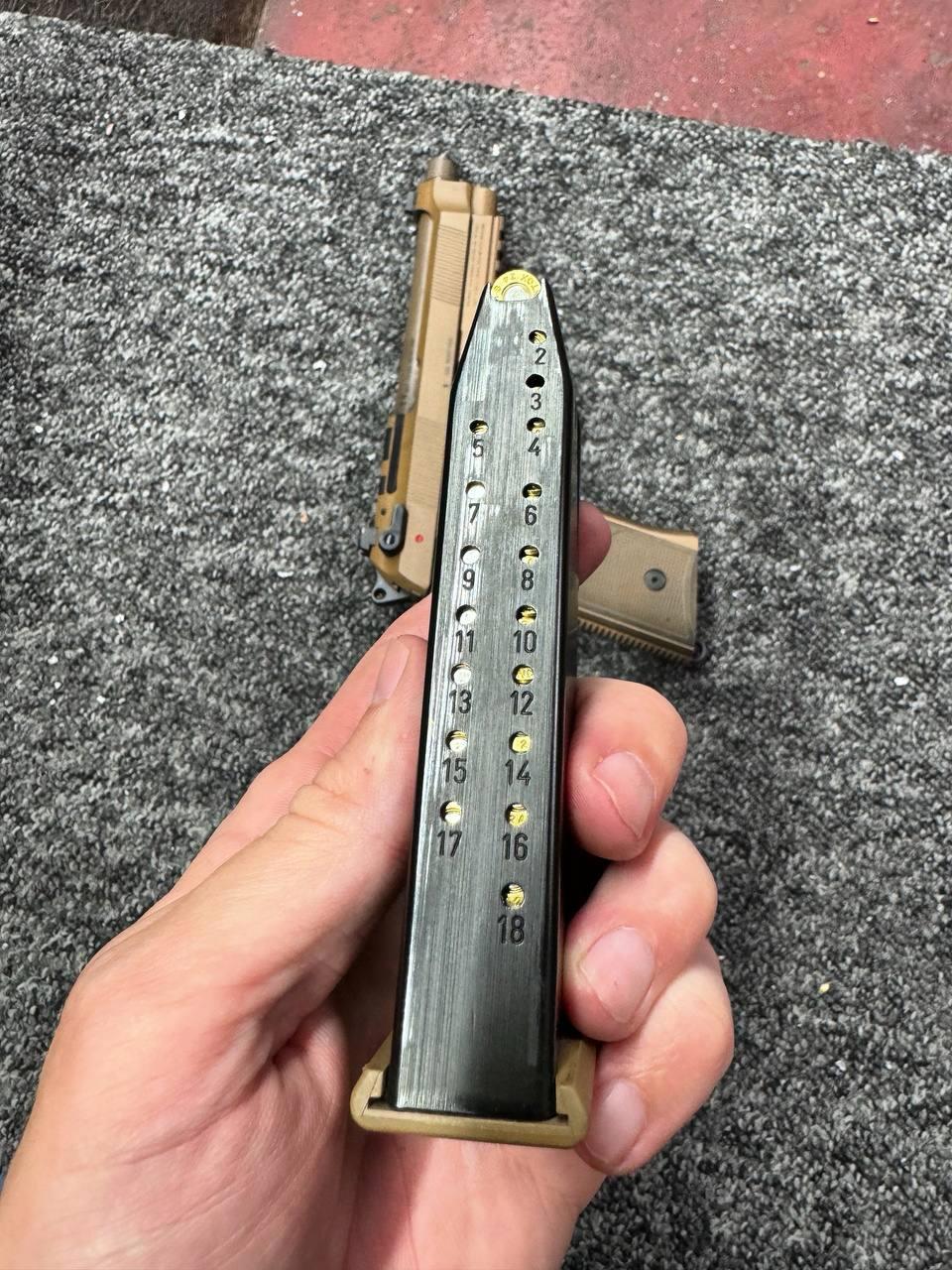 18 патронов в магазине. Заряжаются легко, это очень важно. Наши пока так не умеют. Вообще, магазин, это одна из сложнейших оружейных деталей. Иногда кажется, что проще сделать оружие, чем магазин к нему.