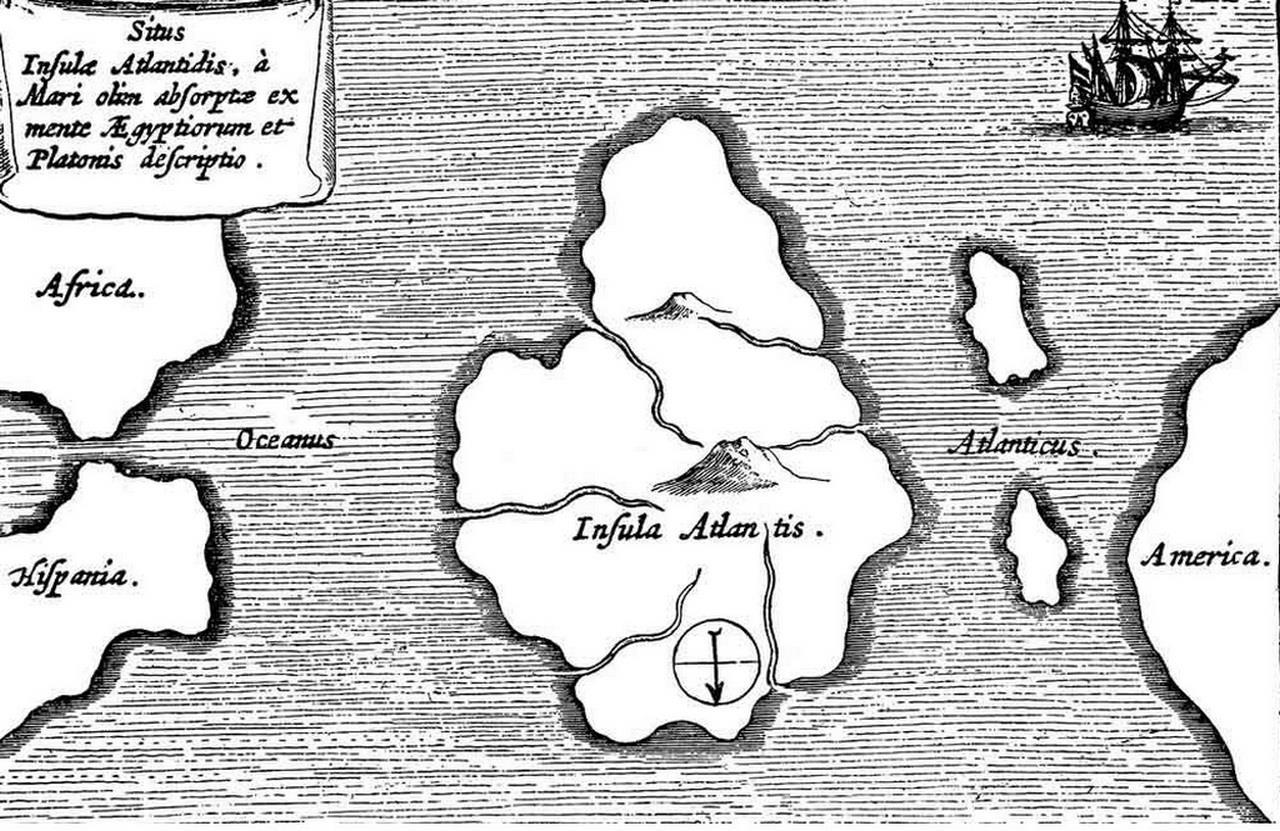 Пропустим мелкие, малоизвестные «источники». Из раскрученных брендов ярче всех на слуху «Платон». Он поминает орихалк очень часто и с восторгом. По нему орихалк – это очень ценный металл «испускающий огнистое блистание», который уступает по стоимости только золоту. Но главное – это то, что «Платон» поминает орихалк в связи с легендой об Атлантиде. Помните Атлантиду? Да? Ту самую, что искали и ищут, когда совсем уже нечем заняться. Для желающих есть карты вроде вот этой: