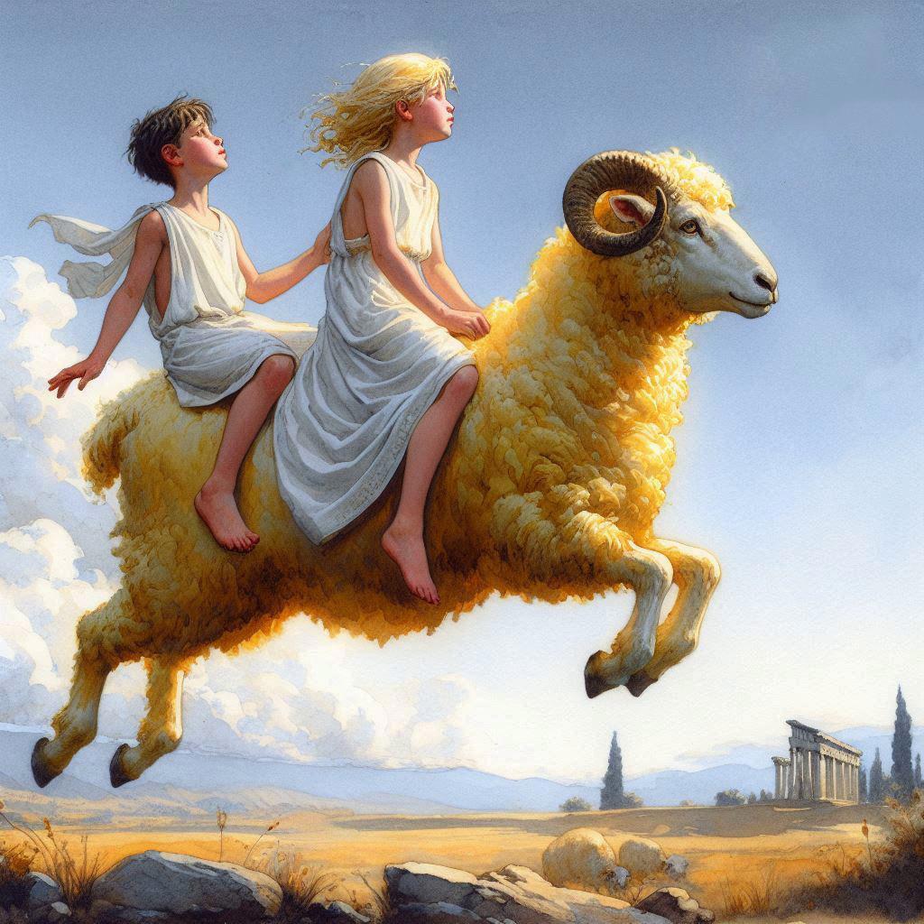 Фрикс и Гелла взлетают на будущем Золотом руне (и Золотом шашлыке, наверное; грузины колхидцы - практичный народ)