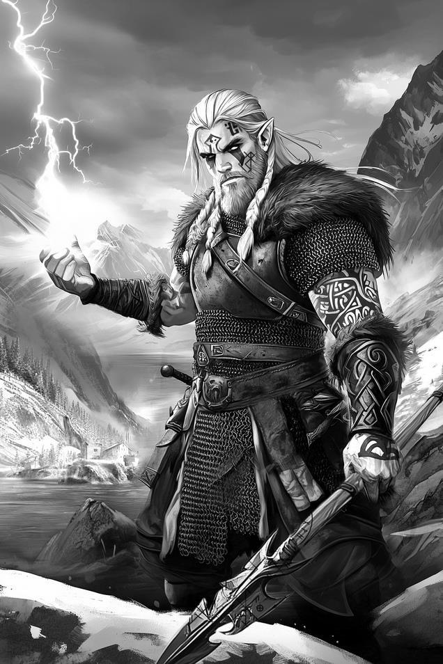 Заодно прилагаю эскиз обложки от художника Григория Дзямко. Тату на лице станет поменьше, само оно помоложе, борода покороче, уши подлиннее, а копьё сменится на топор, потому что любой северный варвар без него, как без рук, но в целом всё должно будет выглядеть примерно так.