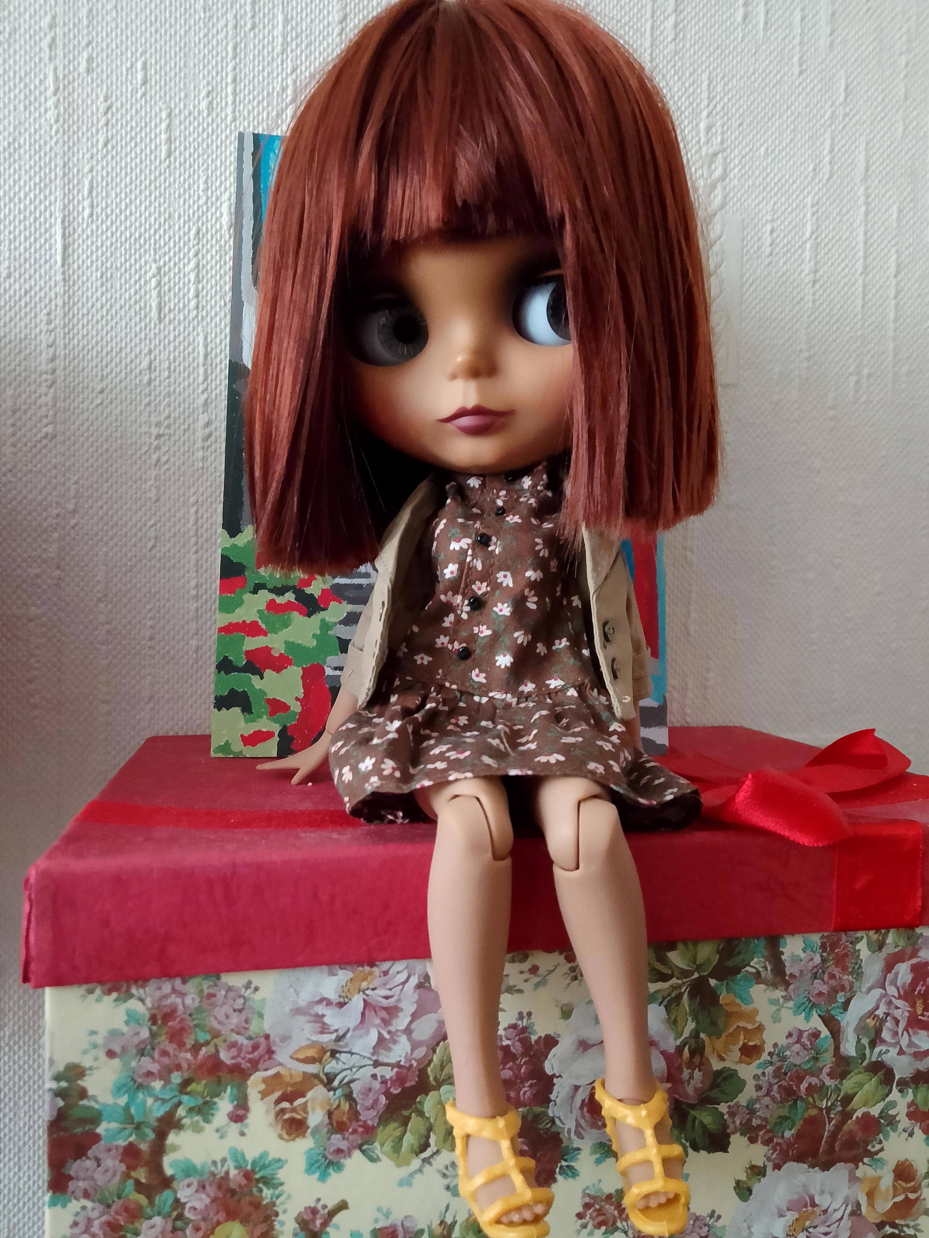 Куклы Блайз, Софи имеет скинтон black matte, я к нему неравнодушна. У Моники лицо глянцевое, тело нормальное матовое. Одежду я заказывала сама, потому что по некоторым вынесенным за скобку обстоятельствам пока не шью. Правда, на Монике платьице моих лап производства, но разница в качестве очевидна.