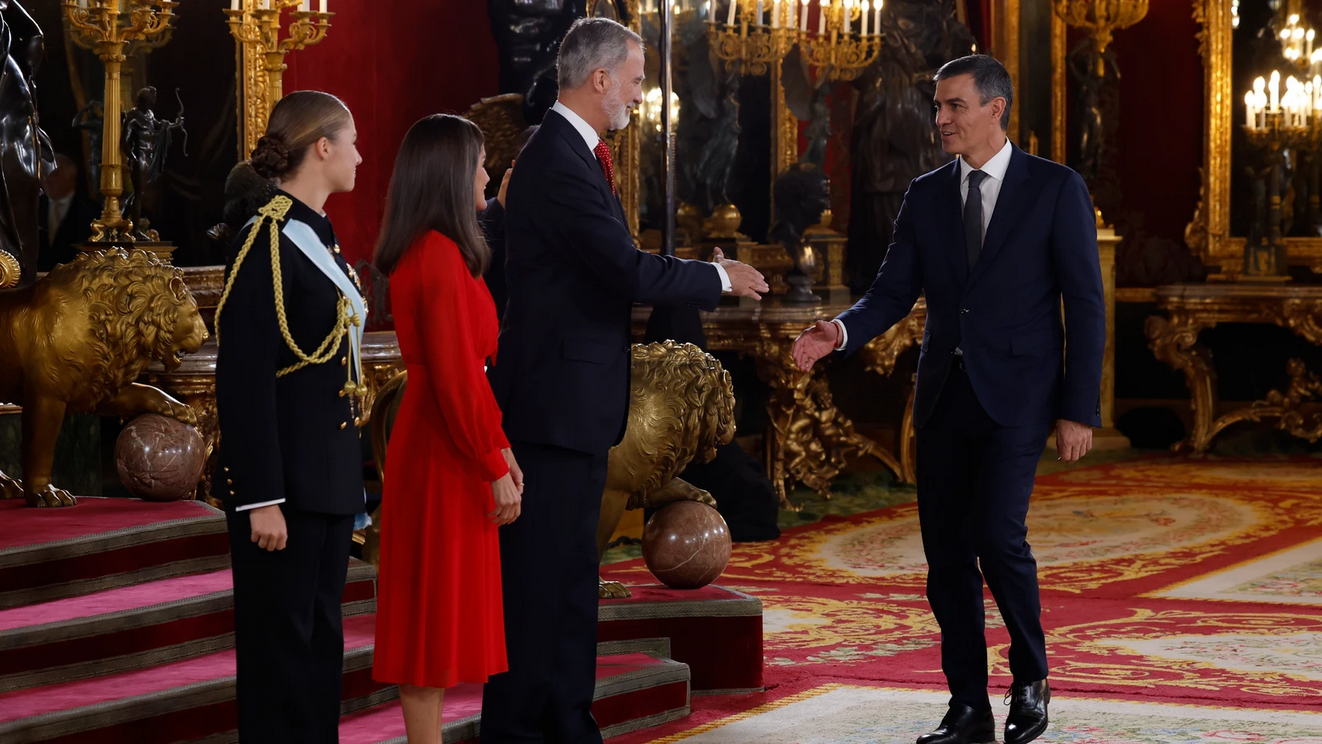 В столице проводился военный парад с участием королевской семьи, руководителя правительства Педро Санчеса (на фото) и даже руководителя Каталонии, впервые с 2010 года присутствовавшего на таком мероприятии. Однако, торжества не задались, вмешалась погода: с утра стояли тучи, а к обеду вообще пошел дождь, парад пришлось прервать, и знаменитые танки Абрамс так и не показались перед публикой.