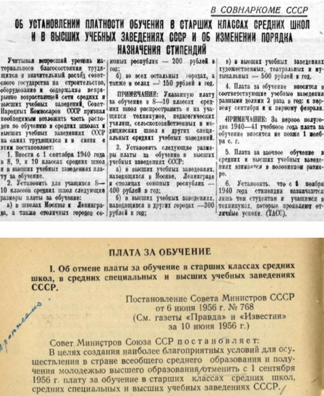 В целом система образования в СССР в этот период сделала ставку на массовость и лояльность учащихся в ущерб качеству, так как дети бывших в ином случае начинали доминировать в инженерной среде, что по идеологическим и политическим причинам было недопустимо. Чтобы обеспечить нужное количество учеников, для подобных курсов, принимались разные меры в числе которых было введение платного образования: решением Совета Народных Комиссаров № 27 от 26 октября 1940 года в СССР была введена общеобязательная плата за обучение для всех учащихся вузов, 8, 9, и 10 классов средних школ, а также техникумов, педагогических училищ, сельскохозяйственных и других специальных средних заведений.