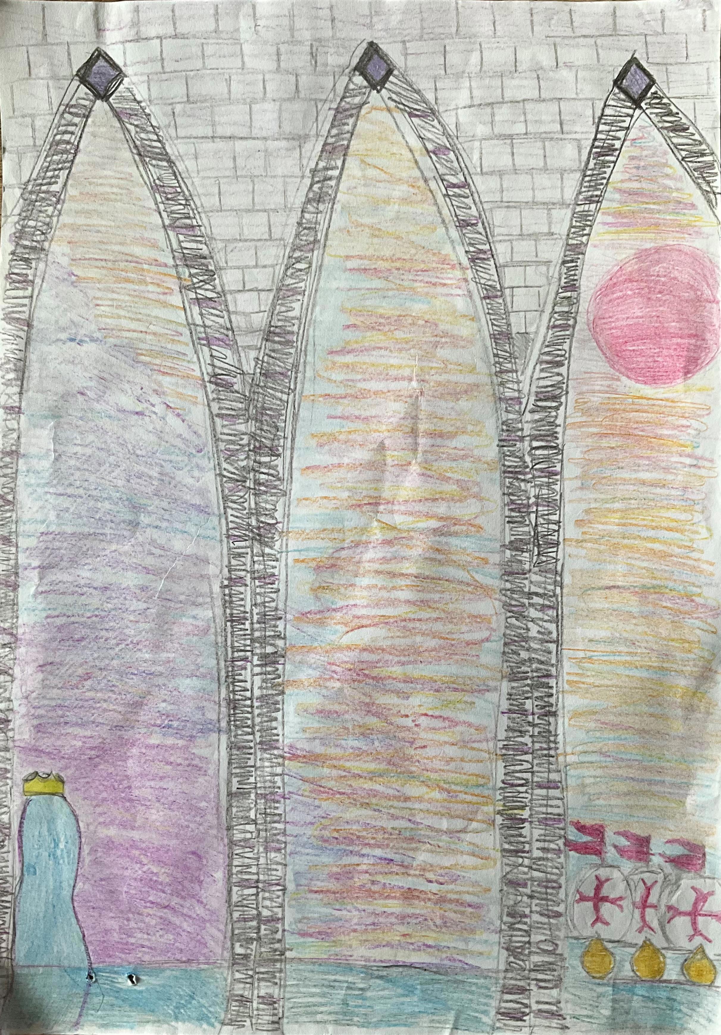 «Над нею, на высоком пьедестале — фигура Колумба, мечтателя, который много пострадал за то, что верил, и — победил, потому что верил. Он и теперь смотрит вниз на людей, как бы говоря мраморными устами:«Побеждают только верующие».»